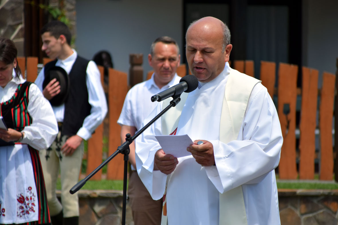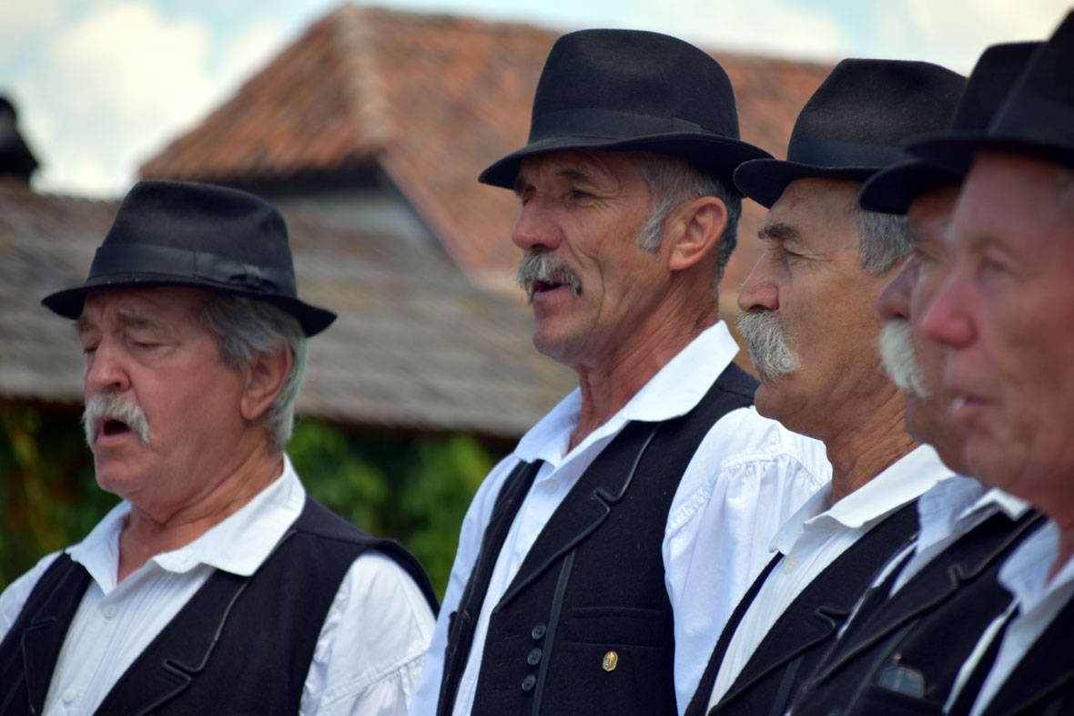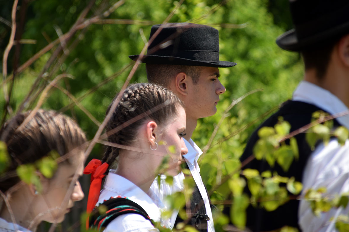 Műsorral készült nekik a falu. Amikor megérkezem, már népviseletbe öltözött gyerekek, kórustagok és lovasok – köztük a Székely Vágtát néhány napja a Villámlás nevű lován megnyerő farkaslaki Tamás Csaba – várják Tamási Áron szülőfalujának trianoni emlékműve mellett a magyar küldöttséget.