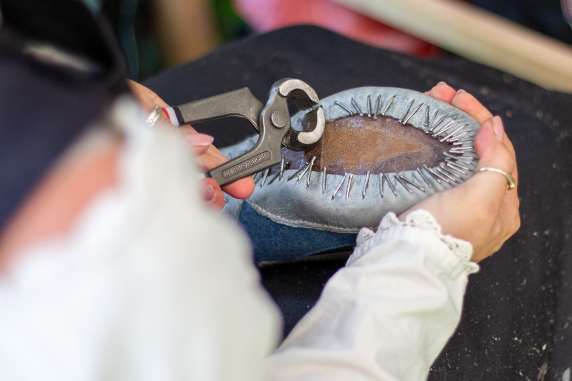 „Lábmérettől a cipőfűzőig tanítjuk őket – ez annyit jelent, hogy nem csak a különböző fázisokat sajátítanak el a tanoncok, hanem összességében az egész folyamatot. Az elejétől a végéig. Ha fázisokat tanítanánk nekik, nem lennének képesek egyedül érvényesülni, mivel az egyik lépést csak a másik segítségével tudnák elvégezni” – tudtam meg Jánostól.