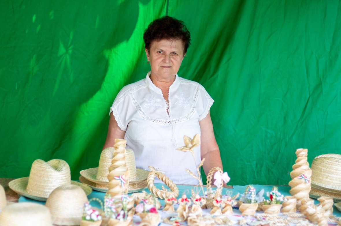 „Ebből megélni nem lehet, mezőgazdasággal foglalkozunk” – jelentette ki Veronika, amikor arról kérdeztem, hogy mennyire kifizetődő ez a szakma. „Sokan inkább megveszik a műanyag kínai kalapokat, mintsem hogy egy hagyományos, kézzel készült szalmakalapot vegyenek. Egy kalap elkészítésének ideje három nap, én most tízet tudtam eladni, éppen ezért nem is hoztam, csak harminc darabot.”