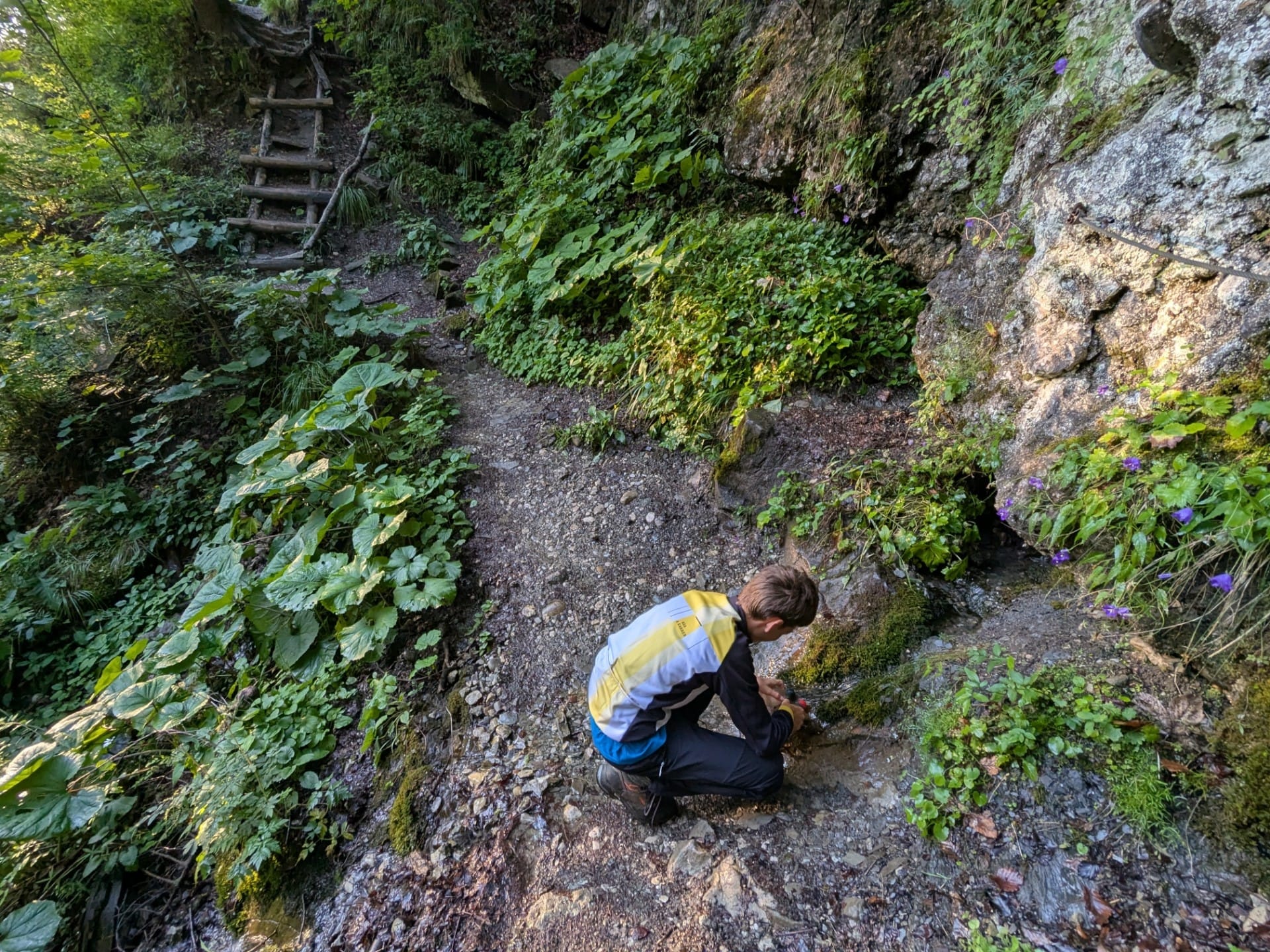 Elbúcsúzunk zerge barátainktól, és elindulunk lefelé a Deubel úton, a Láncoknál. Ezen a túrán először összecsukjuk a botokat. Itt kapaszkodni kell.