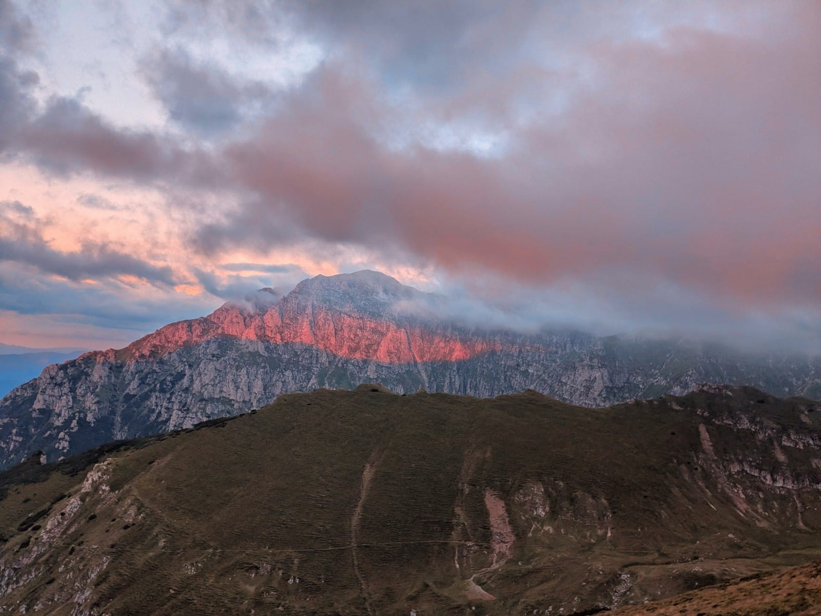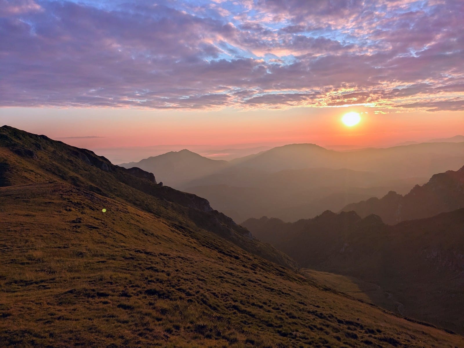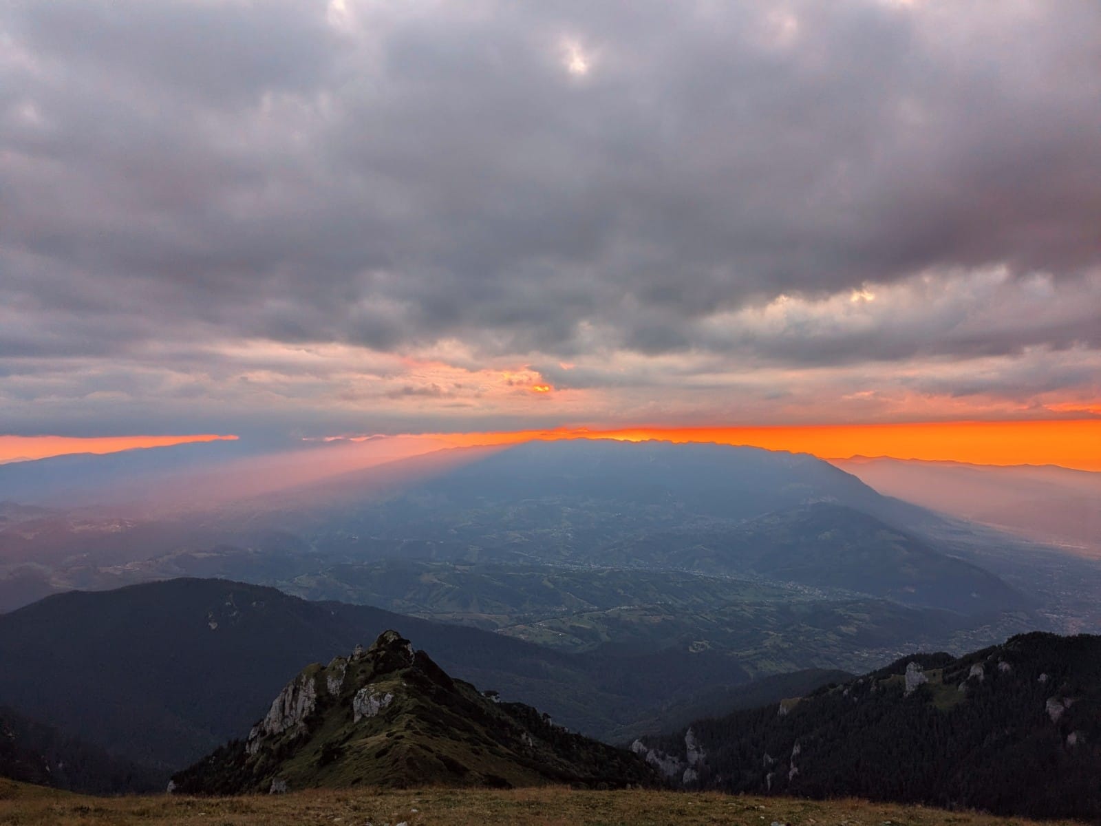 A lemenő nap lenyomata a szemközti Bucșoiu-n.