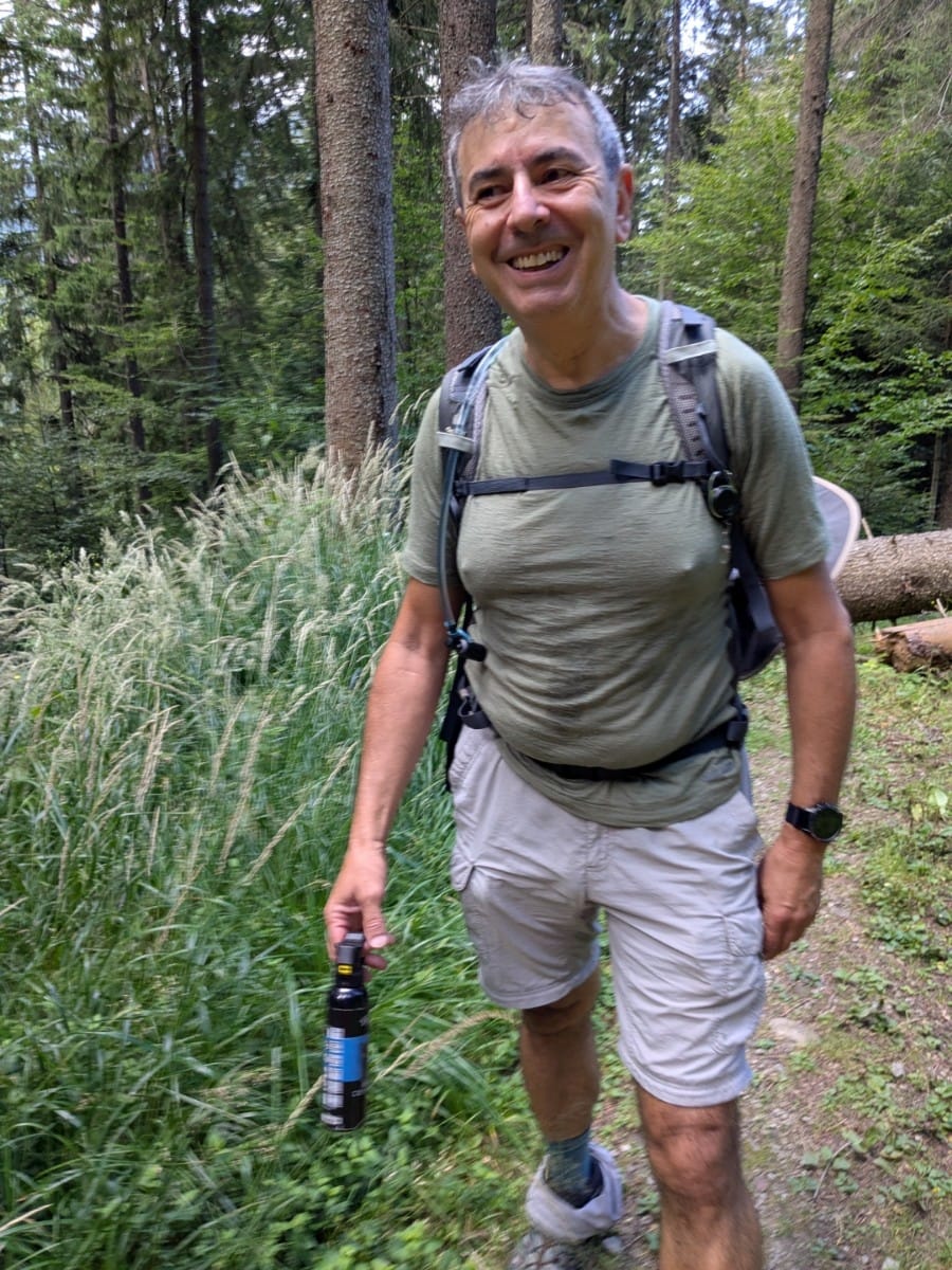 Az első forrásnál megálltunk, jól lemosdottunk, ruhát is mostunk. Egyszer hallom, hogy megint jön egy zajongós. Megvártam, hogy elég közel érjen, s kettőt nagyot mordultam. Nagyon megijedt. Elkezdett barátságosan beszélni hozzám, mintha medve lennék. „Deci ești aici” – ezt mind mondogatta elégge betojtan. Mikor már többedszer mondta, visszaválaszoltam, hogy igen, itt vagyok, és ő is idejöhet. Ilyen boldog embert még életemben nem láttam, amint előbújt a bokor mögül egy hatalmas medvesprayvel a kezében. Egy láda sört is fizetett volna örömében, hogy túlélte a medvetámadást.