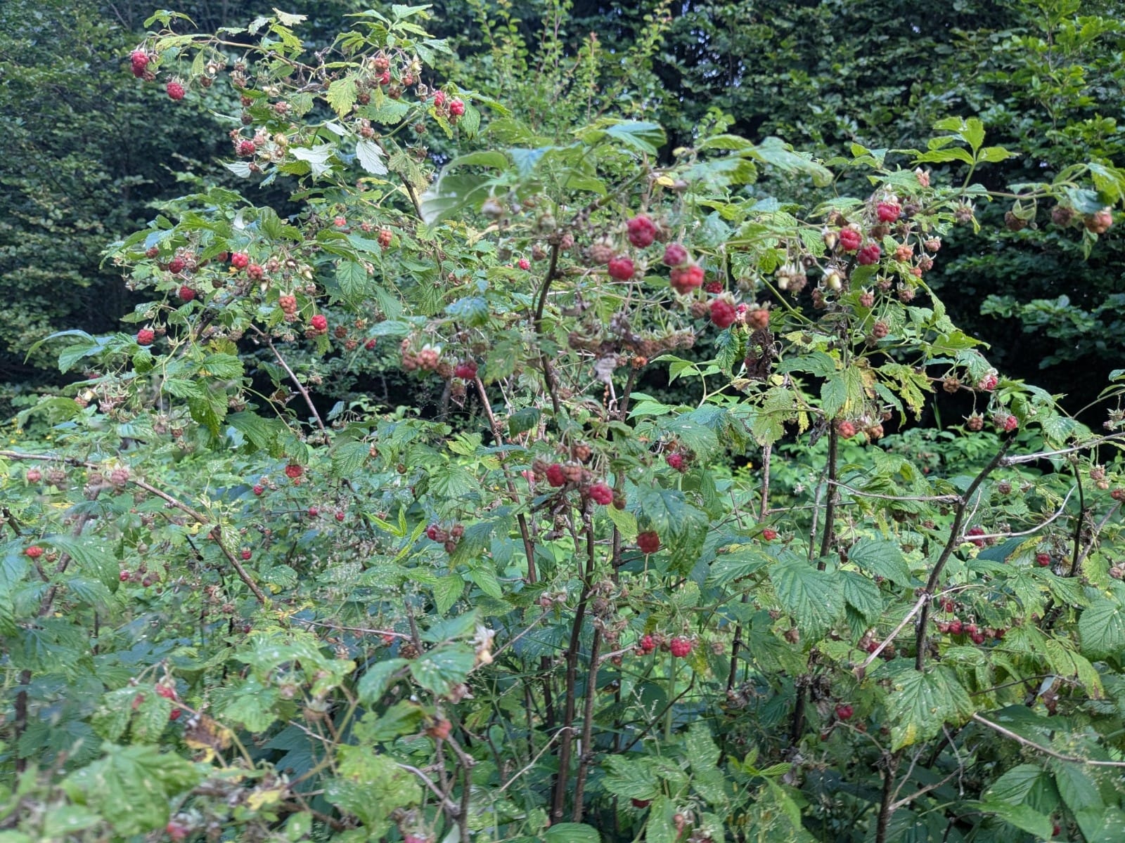 Annyi málnát zabálunk, hogy émelygek tőle. S még mindig marad jó pár vödörnyi a bokrokon.