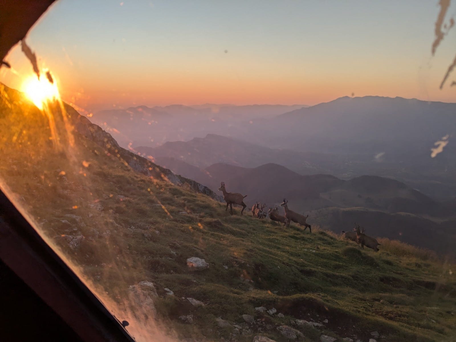 Este Animal Planetet nézünk. Tőlünk 3 méterre legelnek a zergék. Sokszor körülvesznek teljesen, csak veszed észre, hogy a hátad mögött felbukkant még kettő. Figyeljük a szokásaikat, hogyan nyalják a földet, hogyan kergeti el az erősebb a gyengébbet egy helyről, majd megy ő is utána. Csodálatos esténk van, ennél szebb még sosem volt a hegyen.
