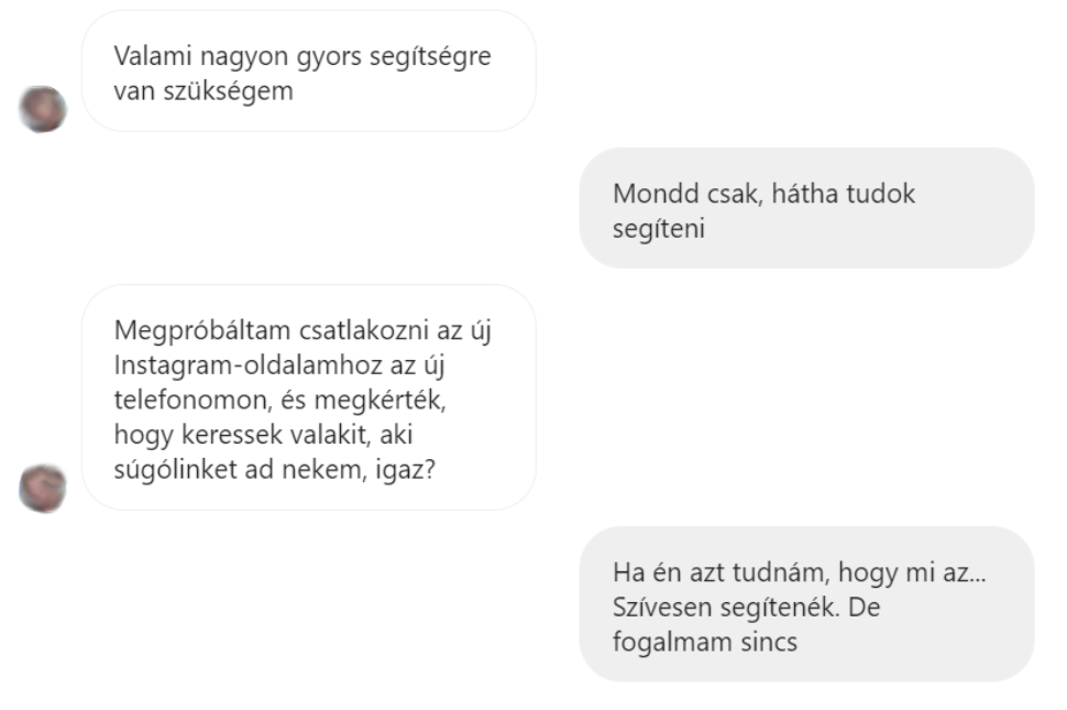 Ennél a pontnál még mindig nem gyanítottam semmit, mert tudok olyan digitális megoldásokról, hogy valakinek az oldalát vagy kérését meg tudja harmadik fél is erősíteni, a „súgólink” alatt is valami hasonlót sejtettem, de az Instagram beállításainál semmi ilyet nem találtam.