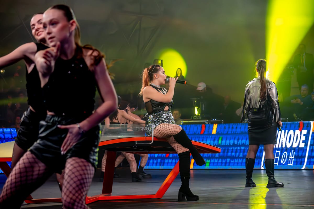 Kinga döntőjét egyébként egy hivatalos megnyitóünnepség is megelőzte. Bocs, ha sportról van szó, mindig elragadtatom magam, pedig a döntőket megelőző show s a körítés is megérdemel néhány szót. Az egyik cigiszünetemben egy technikussal beszélgetek, körülbelül tízen rakták össze a helyszínt, néhány napot eltöltve vele, meséli el. A néptáncosoknak, meg az Elit Dance Companynek is tuti benne van ebben jó adag munkája. Utóbbiak mellett az X-Faktorból is ismert Zilincki Nóra és Zsombori Bíborka, a Friday Rehab énekesnője énekelt.