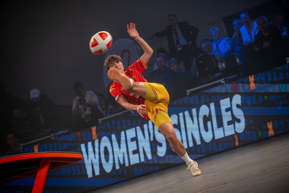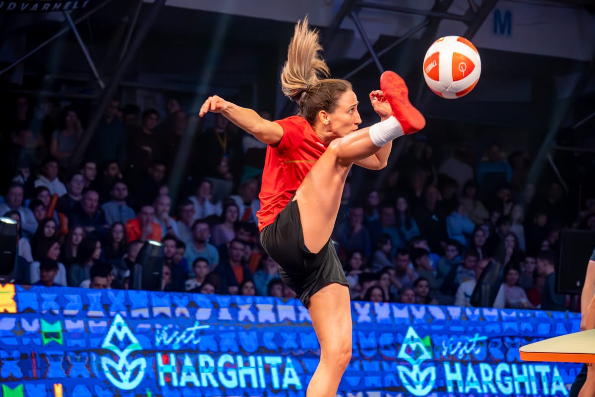 Na, de ugye van ez a Jutatip Kuntatong. A thaiföldi lány, akinek nagyon sok székelyföldi fogja ismerni a nevét a vébé után, és akinek a délelőtti programok során is csodájára jártak az udvarhelyiek, hiszen nem csak magabiztosan, elképesztően látványosan játszik, lényegében akrobatikus teqballt.