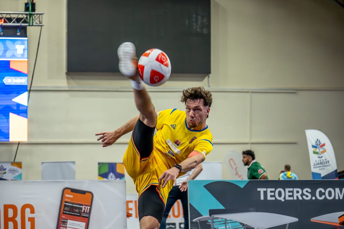 A romániai, de magunkban kuncongva mondhatnánk azt is, hogy az udvarhelyi teqball pedig egyenesen parádésan van. Jó volt látni az ízig-vérig székely, tömeges stábot, azt, ahogy ez egyben van és ahogy ez az eredményeken is látszik. Én az egyéni kategóriák egyenes kieséses szakaszára érkezem ki, Apor a legjobb nyolcba jutásért játszik a csarnokban. Nincs kérdés. Az orosz Kirill Zemskov alig tud pontot nyerni ellene. Az én szimpátiámat mindenesetre elnyeri az orosz, miután közös fotót kér Aportól a meccs után, majd megtapsolja a közönséget, amikor levonul.