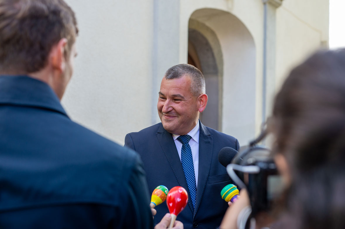 majd szavaztak. Gyorsan le is rohanják a polgármestert mindenféle furcsa felszereléssel a kezükben az igazi riporterek, de „mi ebben nem akarunk részt venni”.