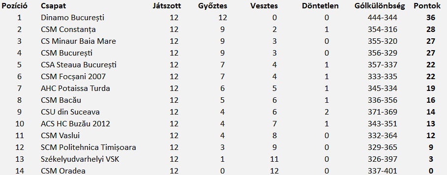 A legutóbbi, tizenkettedik fordulóban az udvarhelyi együttes kiesési rangadót játszott a táblázaton az előtte álló CSM Vaslui otthonában. A mindkét együttes számára életbevágóan fontos meccsen végre pályára lépett a csapat sérüléséből felépült csapatkapitánya, Komporály Attila, de a hazaiak már az első félidőben megpróbálták elrontani a VSK örömét, és meg is nyerték 14-10-ra a játékrészt.