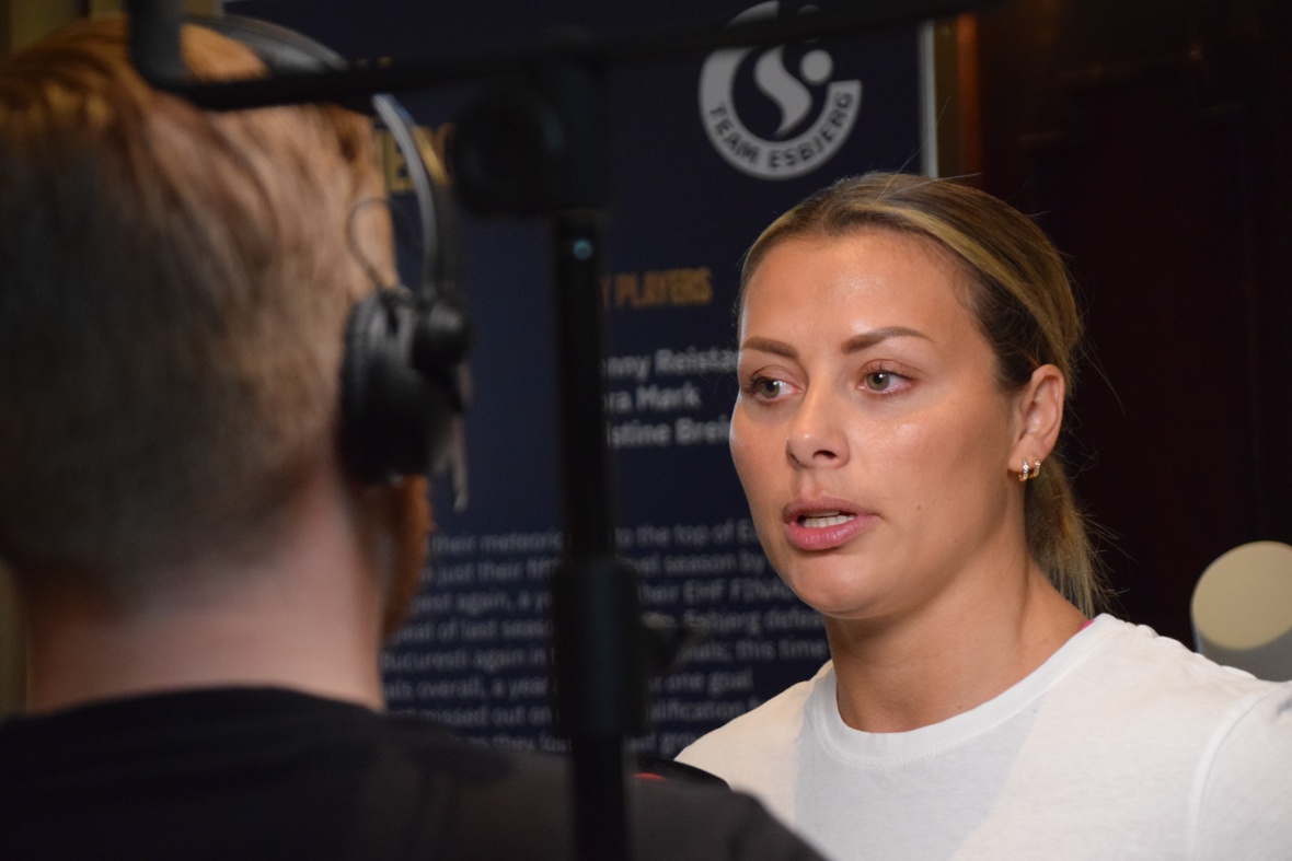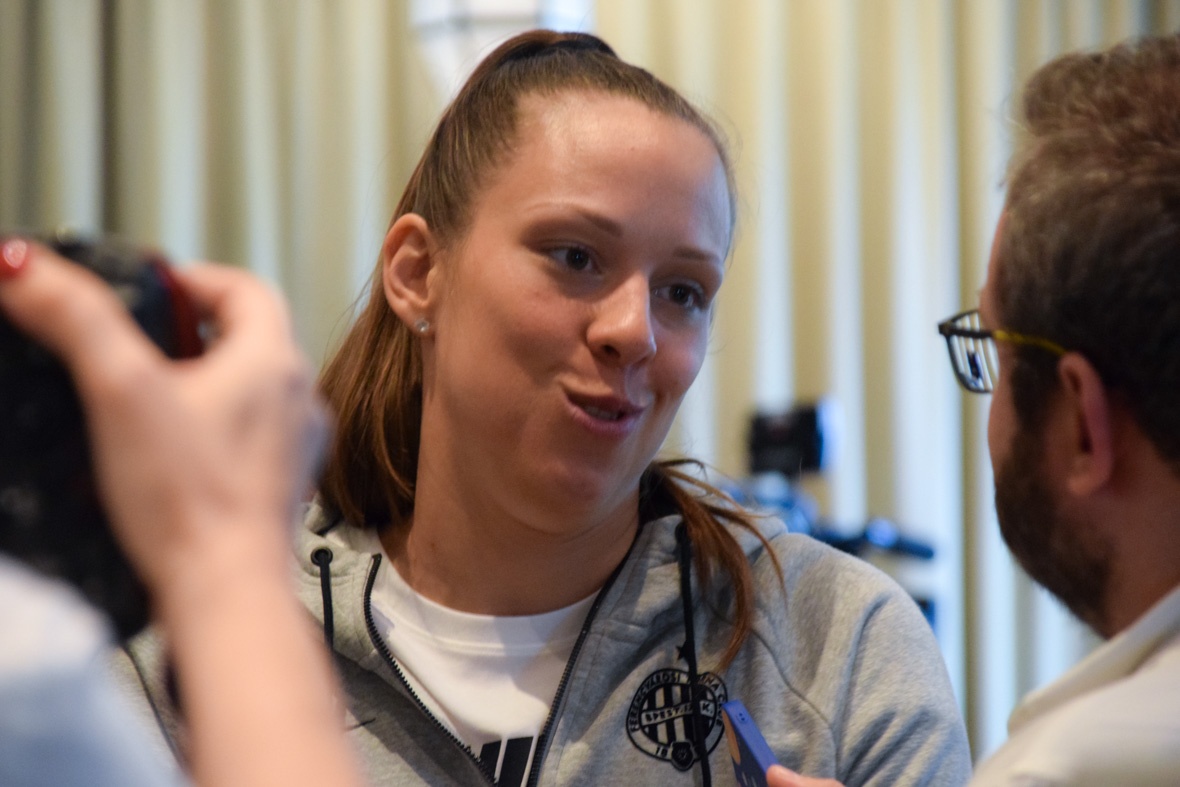 „Nagyon kemény lesz, Esbjergnek (a Fradi elődöntős ellenfele – szerk. megj.) csodálatos csapata van olyan világklasszis játékosokkal, mint Nora Mörk, Henny Reistad, vagy Ingstad. Csúcskategória, nem fér hozzá kétség. Tudjuk, hogy erősek, de azt is tudjuk, hogy nem verhetetlenek. Egy meccsen minden megtörténhet, és mi mindent megtettünk, keményen edzettünk, felkészültünk, és majd meglátjuk, mit tudunk tenni, hogy megállítsuk őket” – mondja Angie Malestein. Vele beszélve csak sikerül elfelejtenem angolul, de mosolyogva segít ki, miközben már az ellenfél csapat játékosai érkeznek a „média elé”, köztük éppen az a Nora Mörk ad interjút a dán tévének, aki hetedszer nyerheti meg a Bajnokok Ligáját.