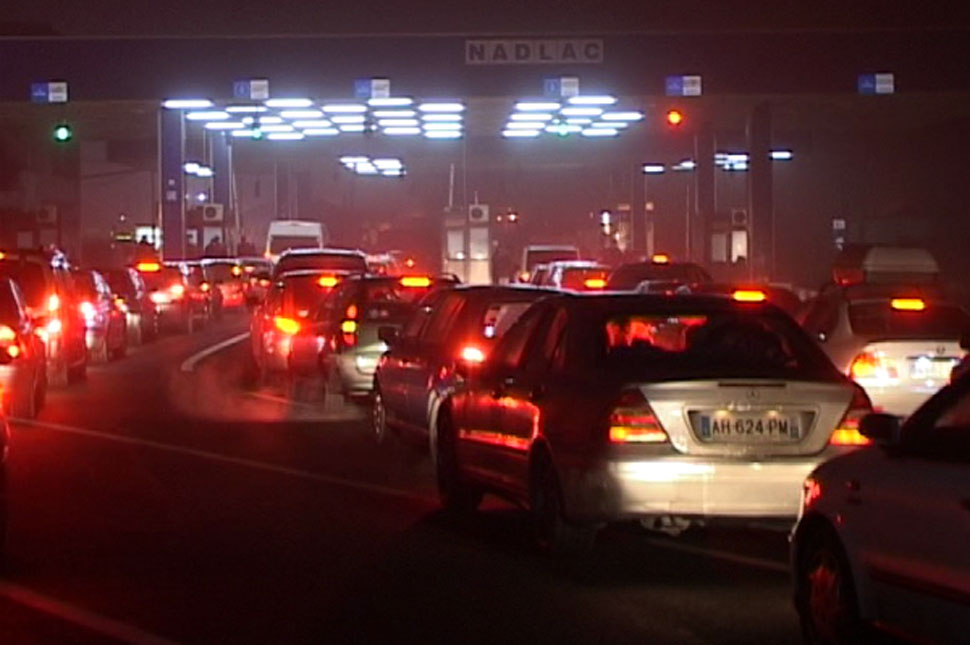 A nagylaki autópálya-határátkelő mind a tíz sávján zajlik a határellenőrzés, a várakozási idő így is meghaladja a 180 percet. Reggel érkezik az első magyarországi konvoj (2500 személy és 700 autó), délben átengedik a második hullámot is Ausztria felől.