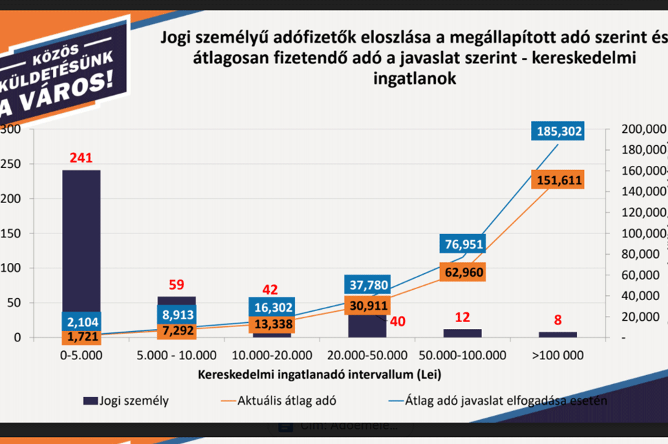A mintegy 400 jogi személyből a legtöbben (241-en) 0-5.000 lej közötti ingatlanadót fizetnek, náluk átlagosan 400 lejjel nőne (1.700-ról 2.100-ra) az adó, a következő kategóriában már 1.700 lejjel többet kellene adni a közösbe, aztán 3.000-re, 7.000-re nőne a lépték. Tizenkét udvarhelyi cég 14 ezret, nyolc pedig 34 ezer lejt fizetne pluszba az ingatlanjai után.