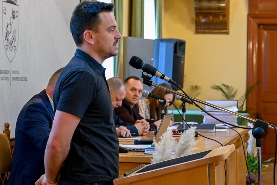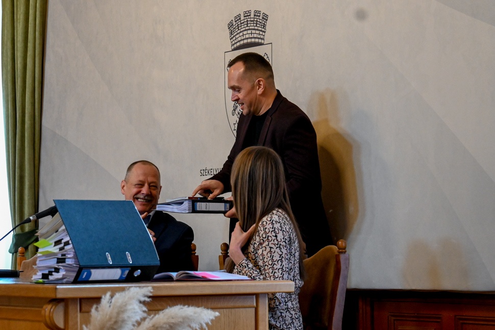 Kilenc óra öt perckor az alpolgármester láthatólag jó kedvében üldögélt a pódiumon az asztalnál, valószínűleg már tudta, amit mi még nem. De mielőtt a sorsáról szó esett volna róla, a napirend előtti felszólalásokban Csáki Gergely az urbanisztikai és kataszteri osztály osztályvezetője kért szót. Arról beszélt, hogy ők ott, az osztályon nem arra szakosodtak, hogy jól tudjanak kommunikálni a médiában, hogy azt mondják, amit a nagyérdemű elvárna, ők tényeket tudnak közölni. Kijelentette: Székelyudvarhely Polgármesteri Hivatala és az urbanisztikai osztály nem adott ki olyan építkezési engedélyt, amely jóváhagyta volna munkálatok elvégzését a Tamási Áron Gimnázium bentlakásának épületén.