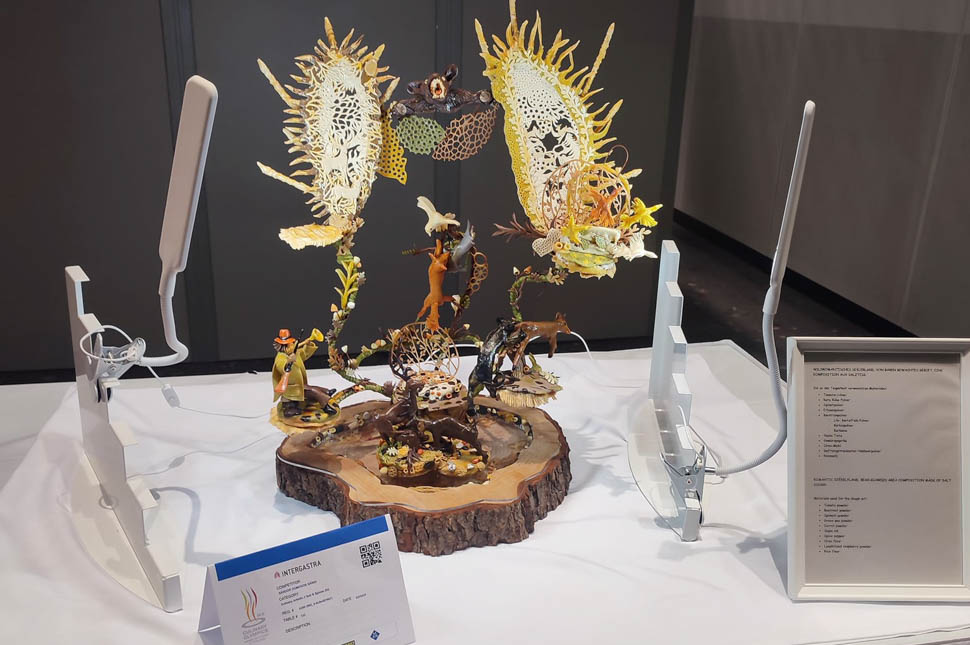 A Culinary Art (konyhaművészet) kategórián belül neveztek be külön alkategóirákba, egyénileg, de végig segítették egymást. Bándi Domokos a sós tészta és a zöldség- és gyümölcsfaragás kategóriákban mérte össze másokkal a tudását. Nem csak az esztétika volt fontos, történetet kellett elmeséljenek az ételekkel, ő a sós tésztából a vadregényes Székelyföldet próbálta megidézni: készített szarvast, madarat, a másik kategóriában a medve témát választotta, így faragott medvét, célzó vadászt.