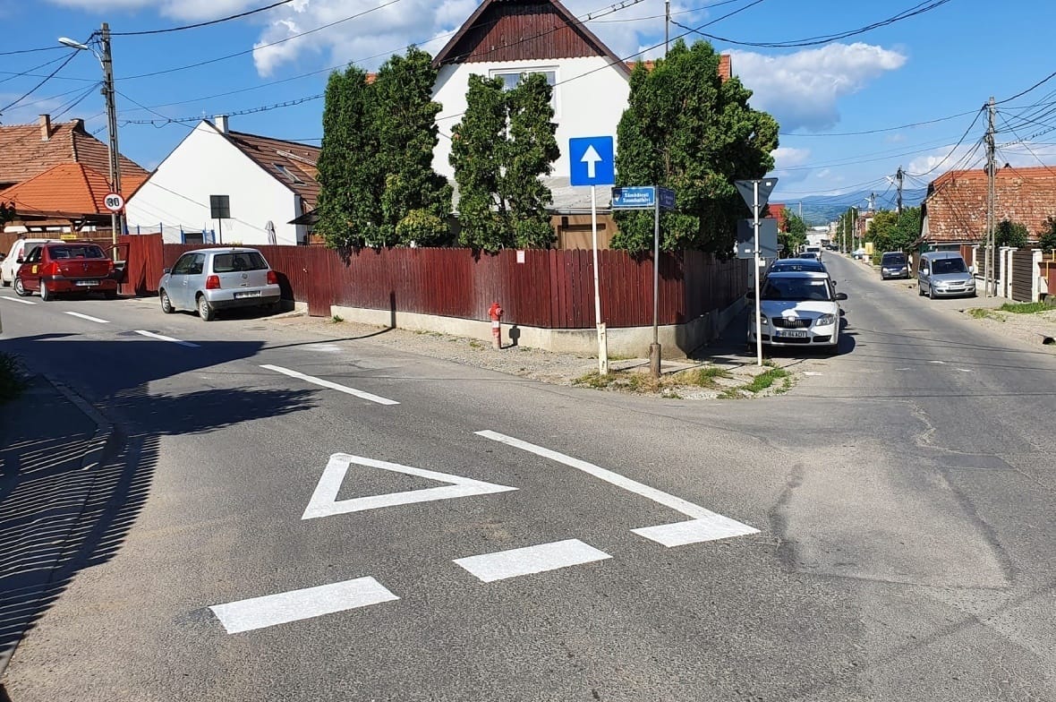 Becsapós KRESZ-feladvány született Szombatfalván az új útfestésnek köszönhetően.