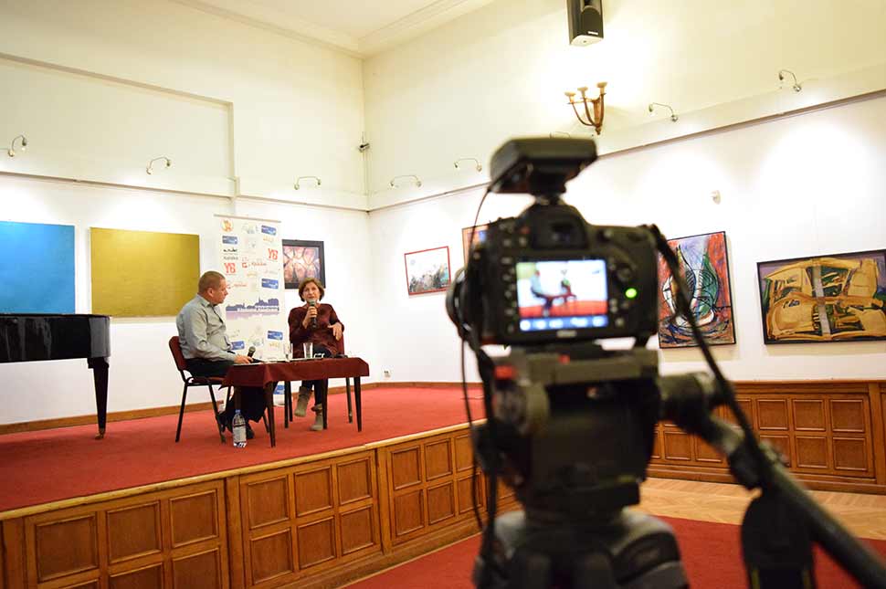 Valószínű azért pörgette picit túl Dósa Zoltán a beszélgetés ritmusát, hogy beleférjenek a szigorúan szűkre szabott időkeretbe, ugyanis a beszélgetés után nyitották meg a Hargitai Szalon udvarhelyi kiadását, amire ugyancsak szép számban ott maradtunk, ha már úgyis ott voltunk. És ennek ők örültek is egy fotó erejéig.