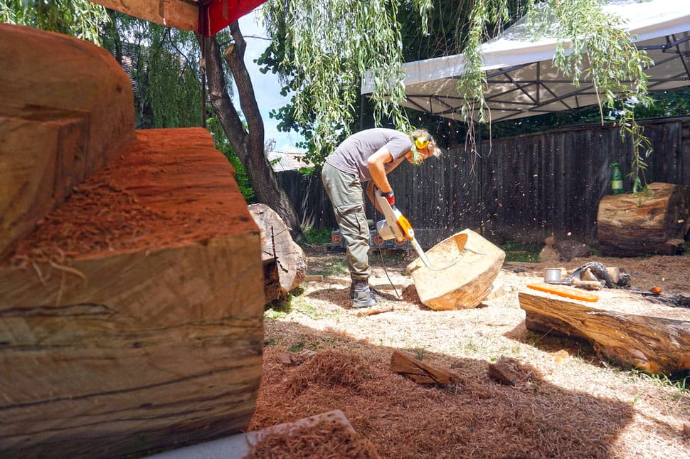 Vele szemben egy lány egy jókora fadarabbal dolgozik, ő is szobrász szakon végzett, tudom meg. Ő sem tudja megmondani pontosan, hogy mi készül, de vannak elképzelései, mondja a gyergyószentmiklósi születésű Dobribán Melinda. Annyi biztos, hogy egy organikus munka lesz, „szépen le lesz kerekítve, aztán majd át is szeretném fúrni, és utána meg játszani szeretnék a felületekkel, a csiszolt- és a vésőnyomos felületekkel pontosabban, s ezt a kontrasztot egy kicsit kihasználni”, sorolja a terveket. Hogy mitől lesz az alkotás organikus? Próbálja kihasználni a fa természetességét,