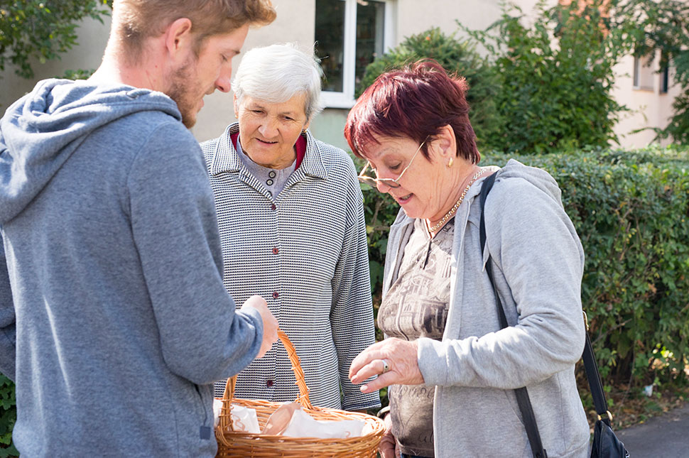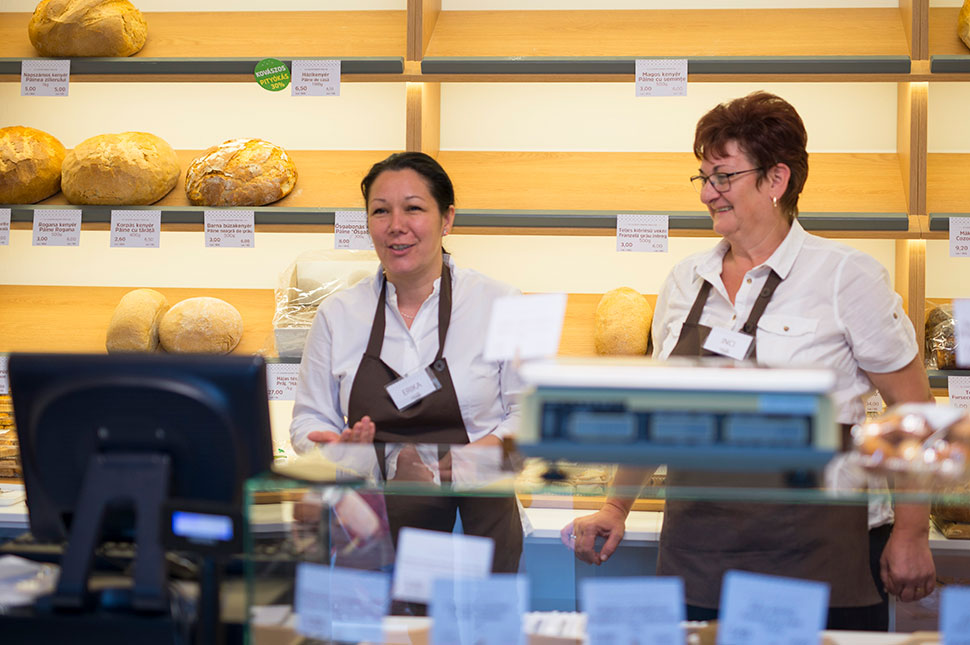 A jókedélyű hölgyek hamar levettek minket a lábunkról, de őket is a finomság. Érdeklődtek, miből van, hol készül, majd megállapították: „Jaj, hát az akkor egészséges, mert hát a rozsliszt az nagyon egészséges! Hmm, de finom! Nagyon finom, és könnyebb a gyomornak is!” Aztán megtudtuk, hogy egyikük mindig rozsos pityókás kenyeret vásárol. „Amióta itt megnyílt az üzlet, én nagyon máshova nem is megyek. Itt lakom a közelben, s ahogy otthon vagyok, jövök át, nem kell öltözködni.”