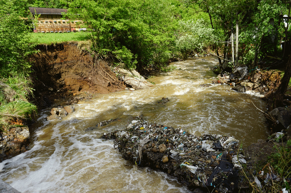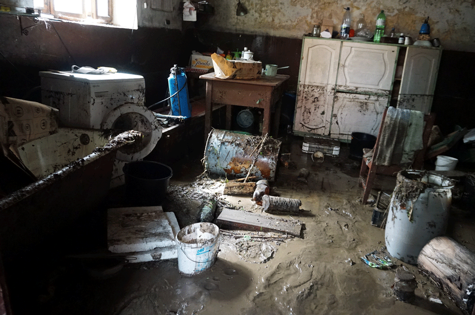 A tavalyi árvíz nyomai a Kis-Homoród mentén Lövétebányán