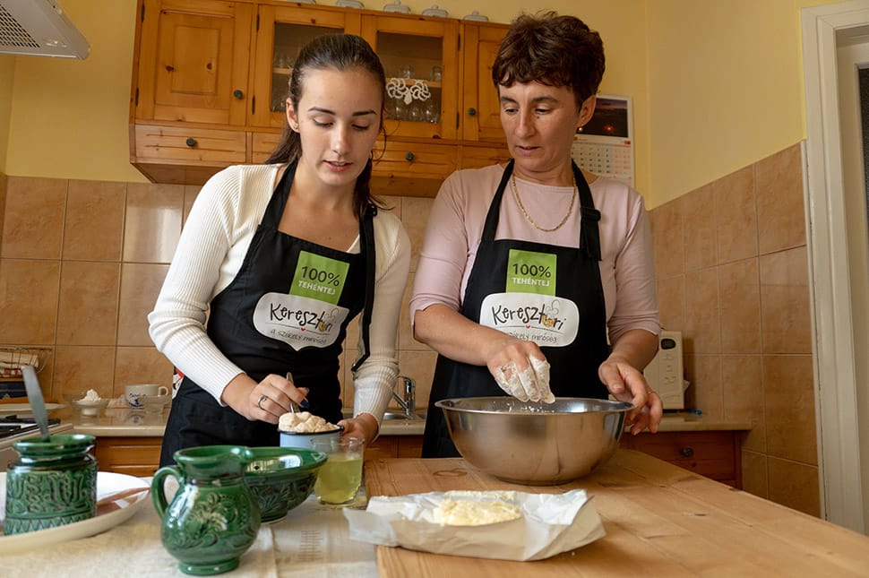 Ibolya és Orsolya gyakran sürögnek forognak együtt a konyhában. Orsolya leginkább édesanyja keze alá dolgozik, de a palacsintasütésnek ő a mestere.