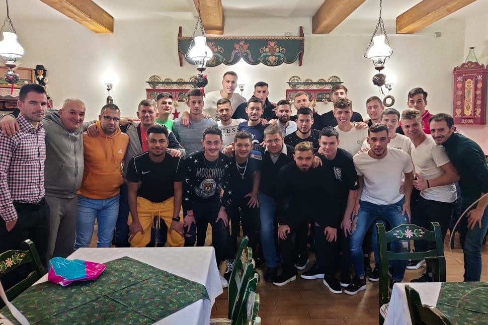 Az első helyen telelő Székelyudvarhelyi FC a Giziben ünnepelt, fotó: a csapat Facebook-oldala