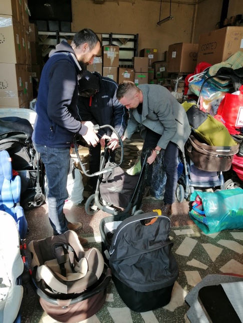 hogy a határon túlra juttassunk lisztet, konzerveket, vizet, higiéniai termékeket és néhány ágyneműt, amelyet aznap pakoltunk fel az önkéntesekkel.