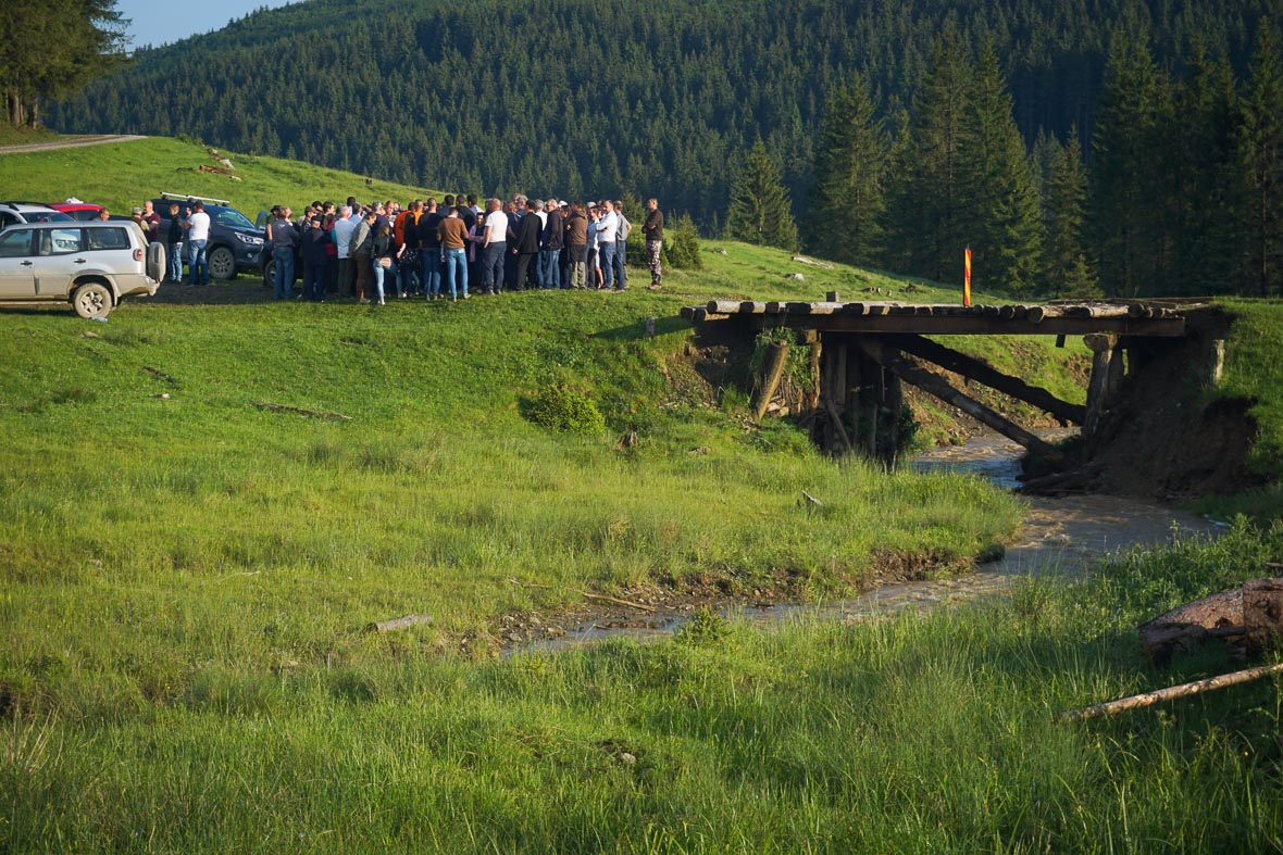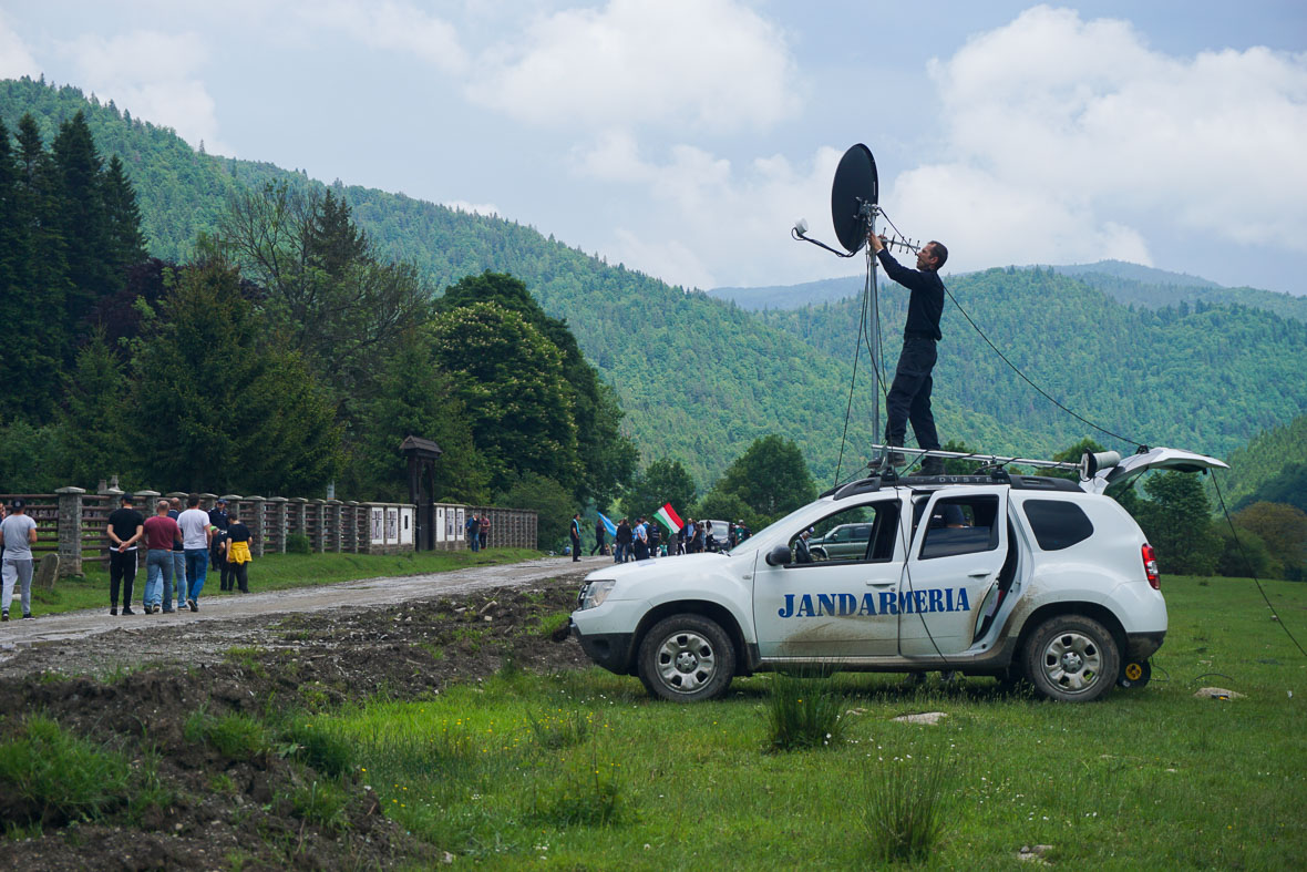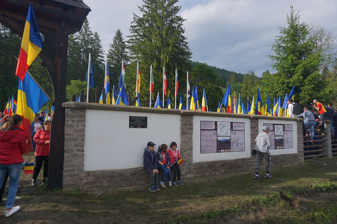 Sajnos, még nem értek le a javításokkal a temetőig, egy darabon még megkóstoljuk a sarat. Az igazság az, hogy Hargita megye magáénak tartja ezt a helyet, de az elmúlt évtizedekben nem nagyon látszott ez meg az út minőségén. Voltam már úgy errefelé, hogy térdig érő sáron és küszöbön felül érő pocsolyákon kellett keresztülhajózni az autóval, mikor pedig fél év múlva ki kellett cseréltetnem a csapágyakat a kerekeknél, akkor az autószerelő megkérdezte, hogy „hol mentél te ekkora vízben, hogy ezekbe befolyt?” Mondjuk, az út Moldva felőli részén sem nagyon látható, hogy valami mást is szeretnének itt, mint botrányt.