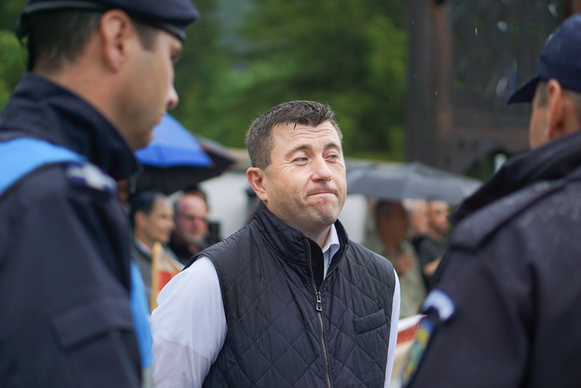Amint másnap kiderül, ezt az embert Cucoş-nak hívják, Carmen Dan belügyminiszter jobbkeze, volt országos csendőrparancsnok, most országos második, mert a tavaly augusztusban a diaszpóra nagy tüntetésén, Bukarestben, egy hatalmas botrányt okozott. Ugyancsak a fociszurkolókat vetette be, akiknek akkor az volt a szerepük, hogy megtámadják a csendőröket, hogy azok könnygázzal válaszolhassanak. Aztán könnygázzal úgy agyonfújatta a tüntetőket, hogy sokan kórházba kerültek.