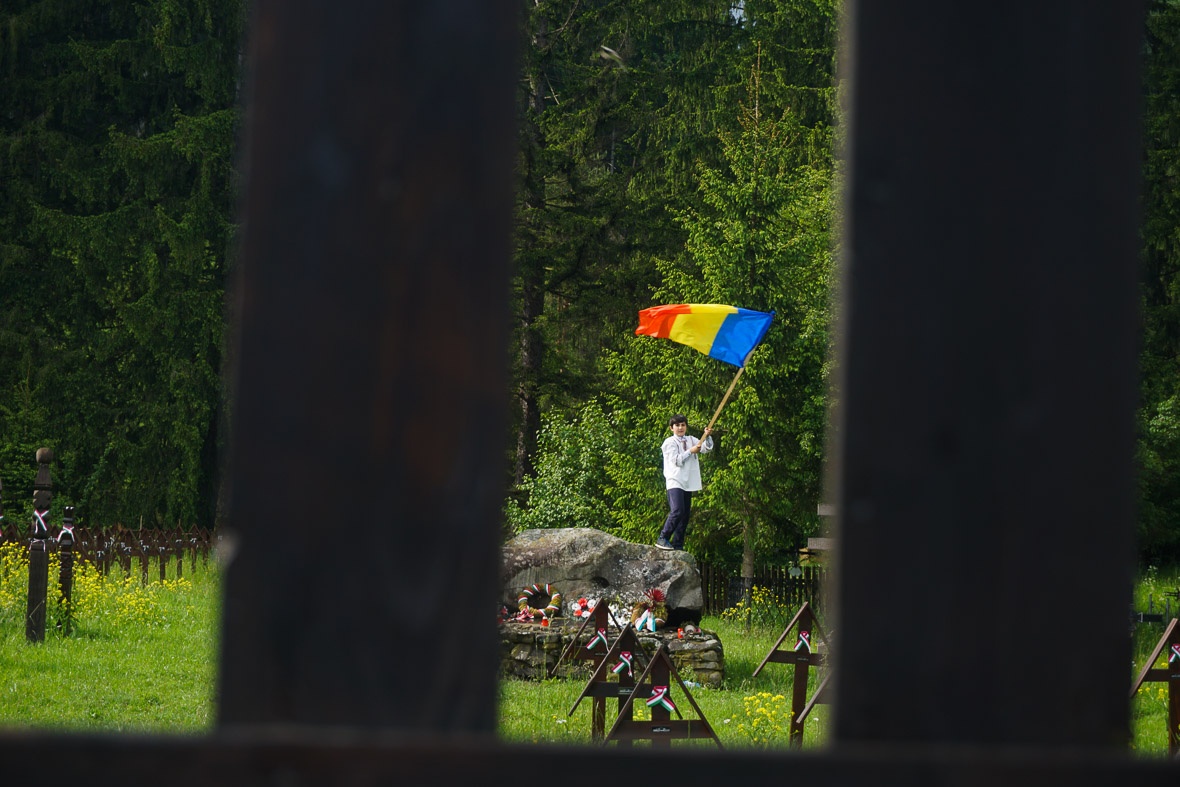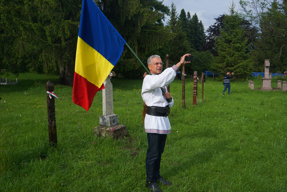 Amíg ezek ott kint finoman lökdösődnek, odabent a temetőben kezdenek megjelenni a zászlós románok. Egy gyerek zászlót lenget a műemlékre felmászva. Egy másik vagány legény megmássza a saját vadiúj, felavatatlan román keresztjüket. A csend őrei nem foglalkoznak velük. Vajon miért nem?