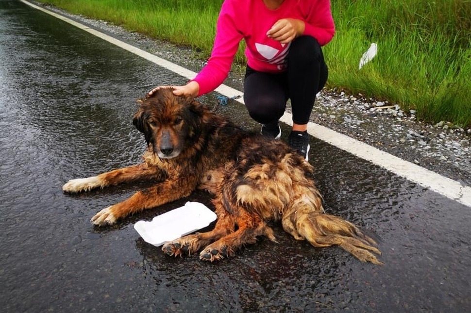 A kutya több sérülést is szerzett, de életben maradt.