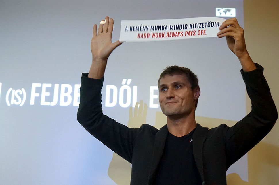 „Beértem a célba meghalva, odajött a szervező, gratulált, hozott egy széket, hogy üljek le. Leültem. Kérdezte, hogy vagyok. Mondtam neki, hogy nem túl jól, de örülök, hogy beértem, és hogy számomra ez egy mentális verseny volt. Úgy érzem, akkor kilencven százalékban fejben dőlt el, hogy én hatodik tudtam lenni” – fejezte be váratlanul előadását a székely vasember, aki a vastaps előtt még egyszer kihangsúlyozta, mennyire fontos a mentális és a fizikai felkészültség, de közel se higgyük azt, hogy bármelyik önmagában elég lenne a sikerhez.