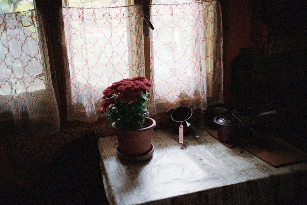 Mindössze 995 lej minden jövedelme, ami nem sok, ha azt vesszük, hogy 527 lej csak az ebéd, amit muszáj megvenni, ha meleg ételt szeretne enni. Régebb, amíg jók voltak a lábai, főzött magára, de most nem tud. A konyhában az asztal szerepe csupán annyi, hogy legyen, amire tenni a virágot.