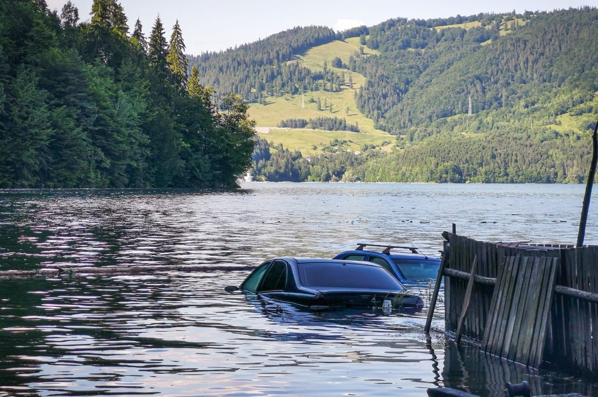 nyomban ki is küldte önkéntes megfigyelőit a helyszínre, akik megállapították, hogy az autók július 14-én még mindig ott voltak a vízben. A szóvivő információi szerint az egyik már két hete, a másik már egy hónapja ott lehet, és megerősítette, hogy a nagy esőzésektől nőtt a tárolt vízmennyiség, ami ellepte az autóparkoló alacsonyabban fekvő részét, így történt a baj.