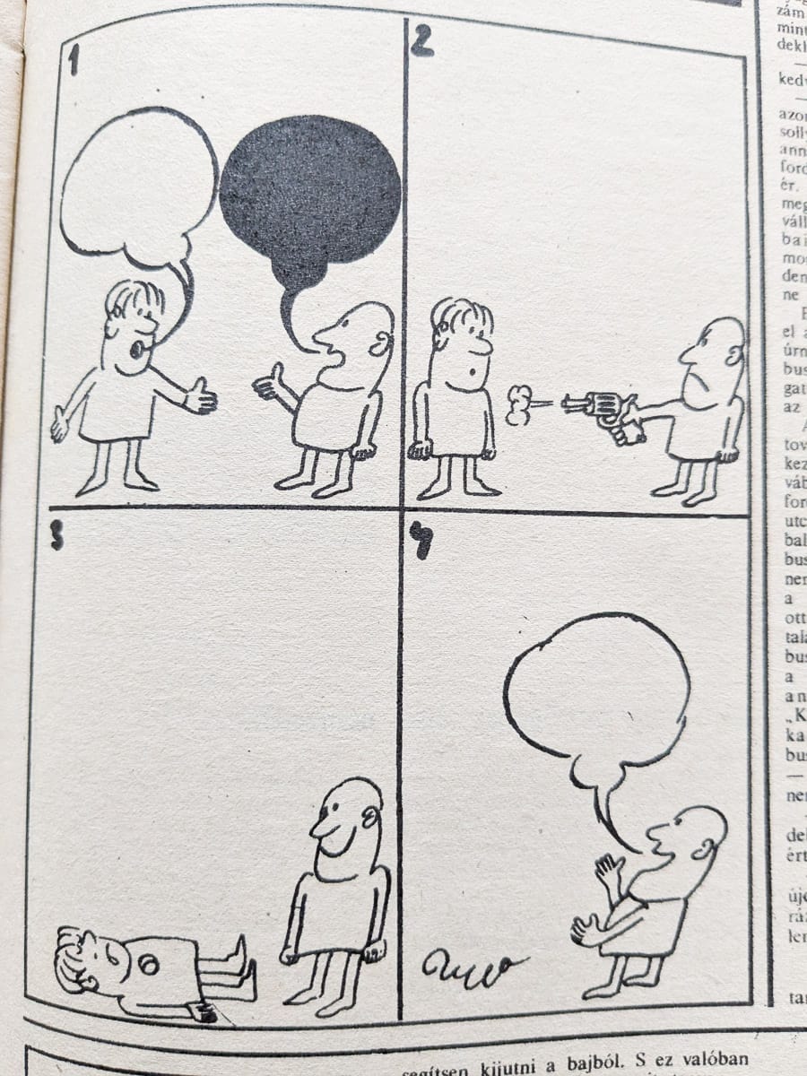 Természetesen, mindenben igaza van a bölcs vezérnek, még mostani aggyal nézve is. Csak az nem érthető, hogy ez a hatalmas bölcsesség miért nem látszik meg az életszínvonalunkban. Miért csak egyeseknek, a rendszer kiszolgálóinak életszínvonalán látszik meg. És miért van az, hogy jól képzett értelmiségi embereink belevetik magukat a Dunába vagy a zöldhatáron át a romlott Nyugatra szöknek, életüket kockáztatva, mikor itthon van a fejlődés, a jólét és a bölcsesség? Miért próbál mindenki a romlott Nyugatra emigrálni? És miért van az, hogy lelövik azt, aki szökni próbál a jólétből? De erről nem beszélünk, és főleg nem érthetően.
