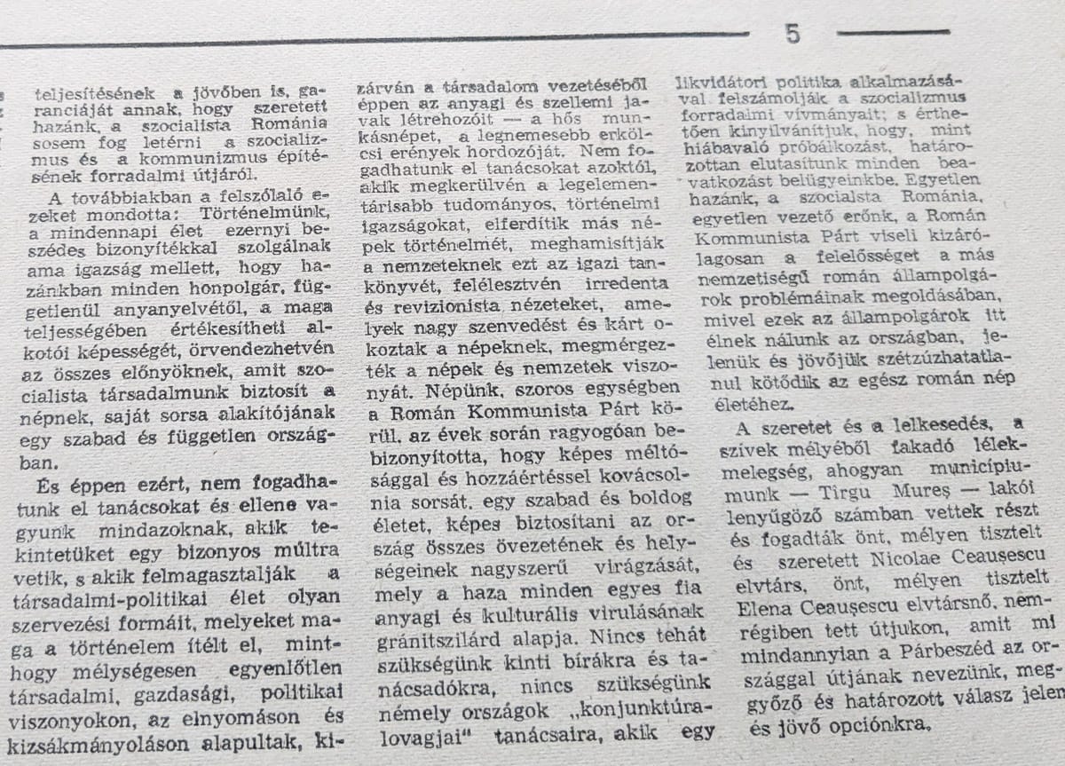 Remélem, ennyiből sikerült ráérezni a diktatúra hangulatára, és rátérhetünk pár udvarhelyi, bocsánat, Odorheiu Secuiesc-i részletre, megnézve, hogyan nézett ki az ezzel kapcsolatos újságcikk a régi rendszerben, és hogyan nézne ki most, egy esetleges Simion-diktatúra esetén.
