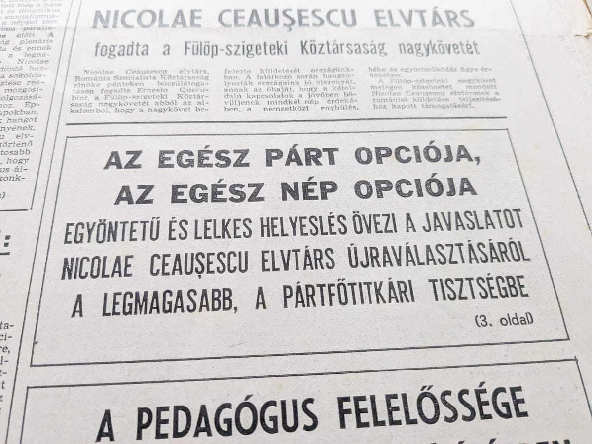 Megjegyzem, hogy minden cikk elején, közepén vagy végén szerepelnie kellett Nicolae Ceauşescu nevének valamilyen gyönyörű jelzős szerkezetben. És ha Elena nevét is be lehetett írni, akkor az bónusznak számított.