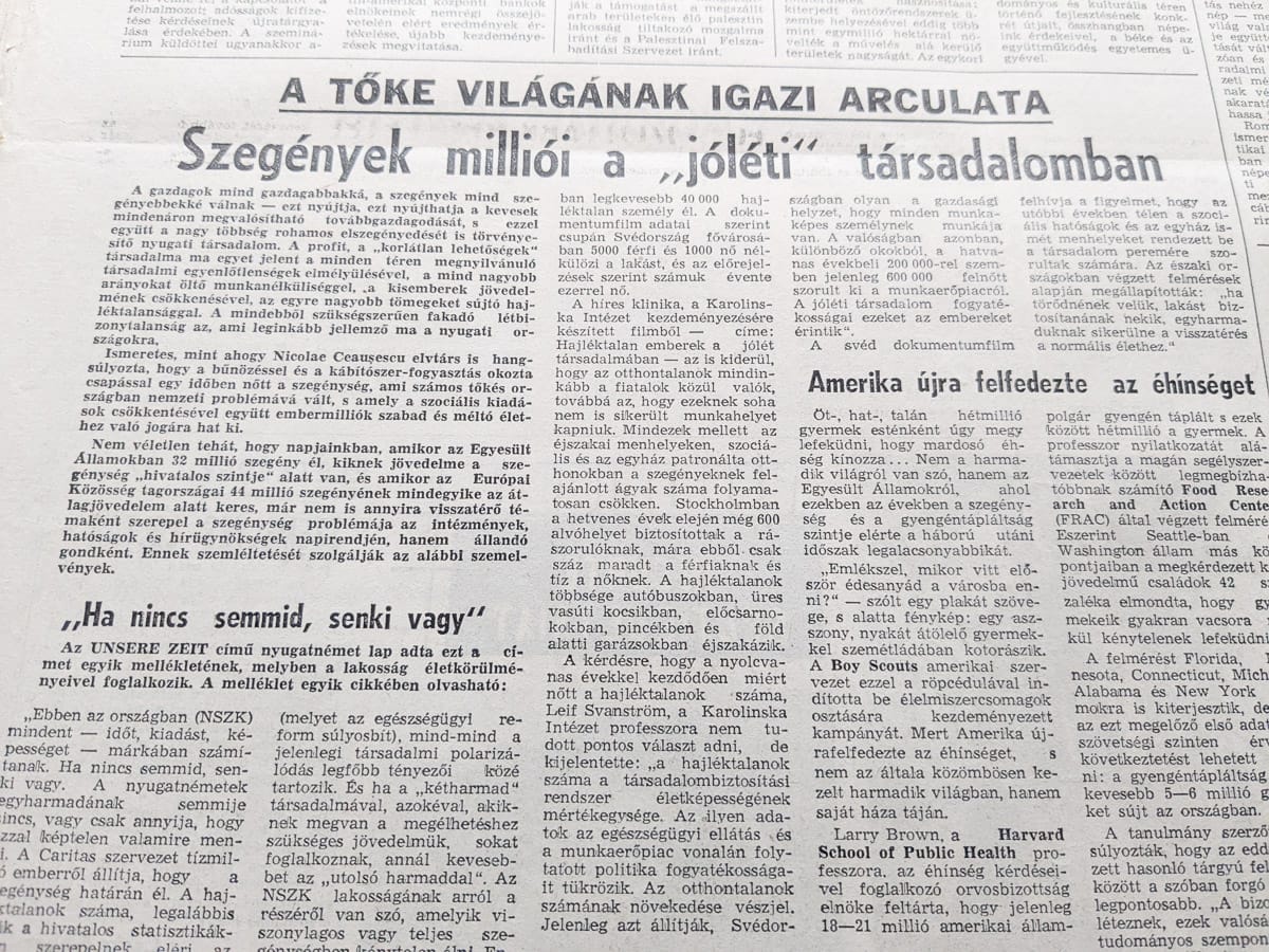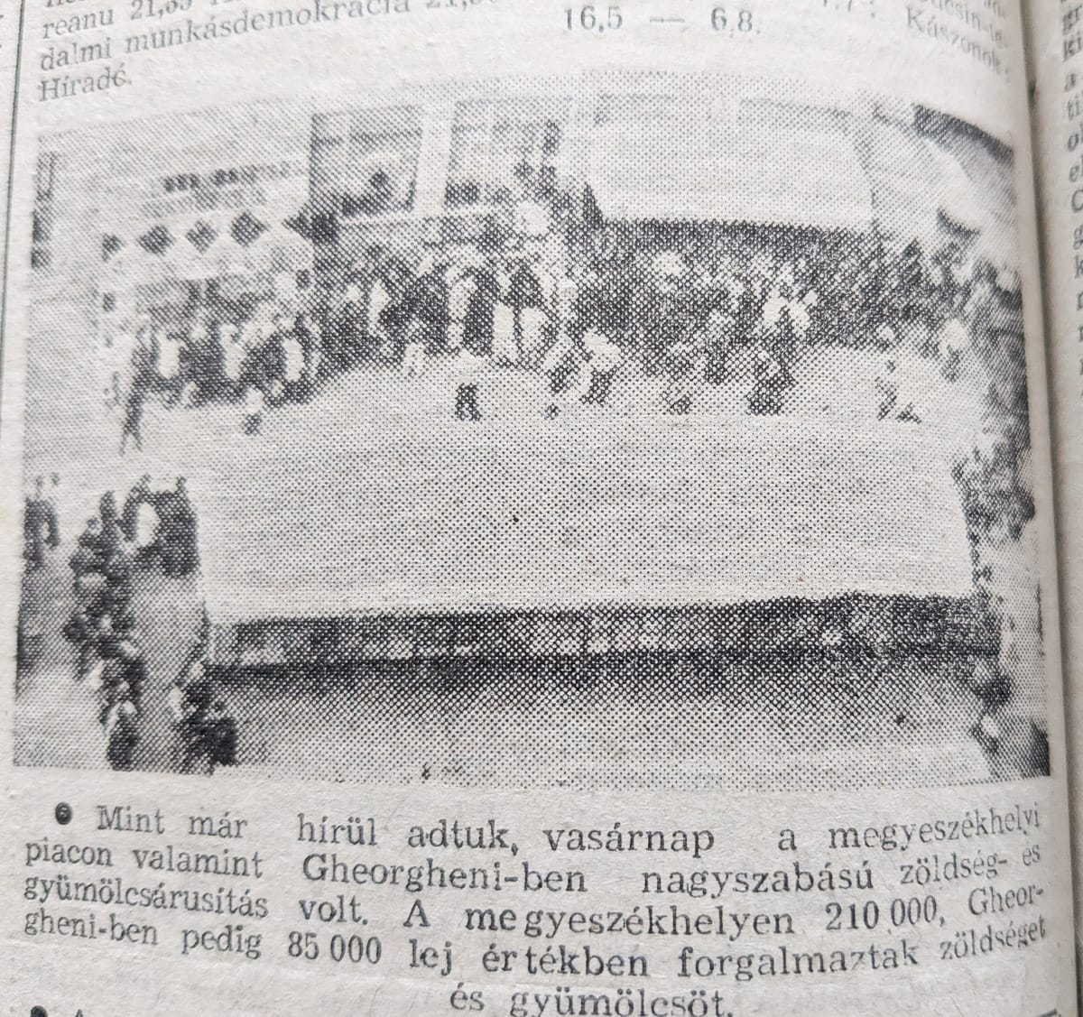Nem úgy, mint nálunk, modern életkörülmények között, tökéletes ellátással. Az újság többször is ír arról, hogy a piacon zöldséget és gyümölcsöt árultak, akkora hír ez. Fotót is közölnek, amin látszik, hogy több száz ember tolong, hogy valamit kapjon.