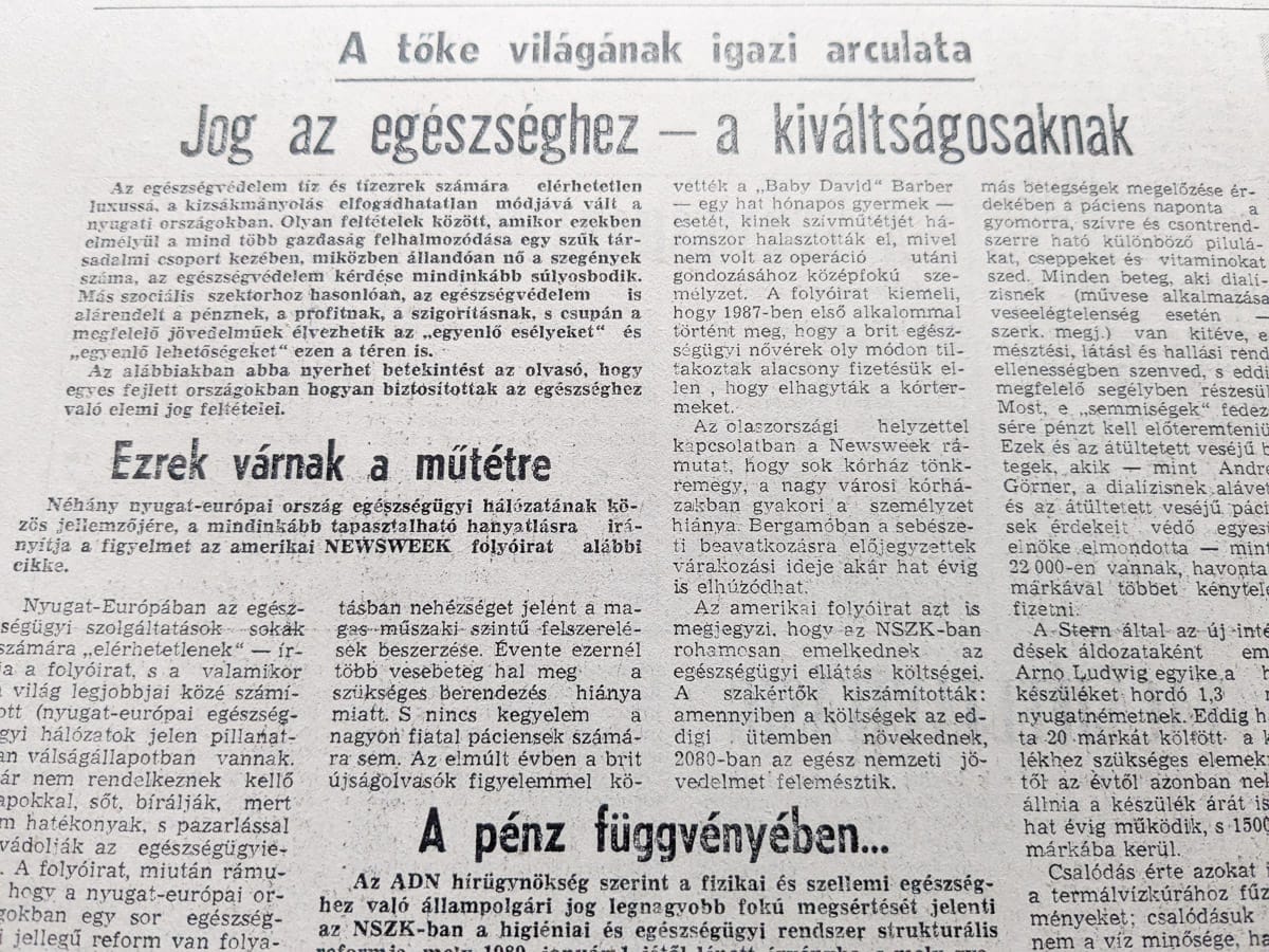 A romlott Nyugaton pénzért van az egészségügyi ellátás (boríték nélkül adják oda az orvosnak a pénzt, és nem dugiban) és várni kell a műtétre.