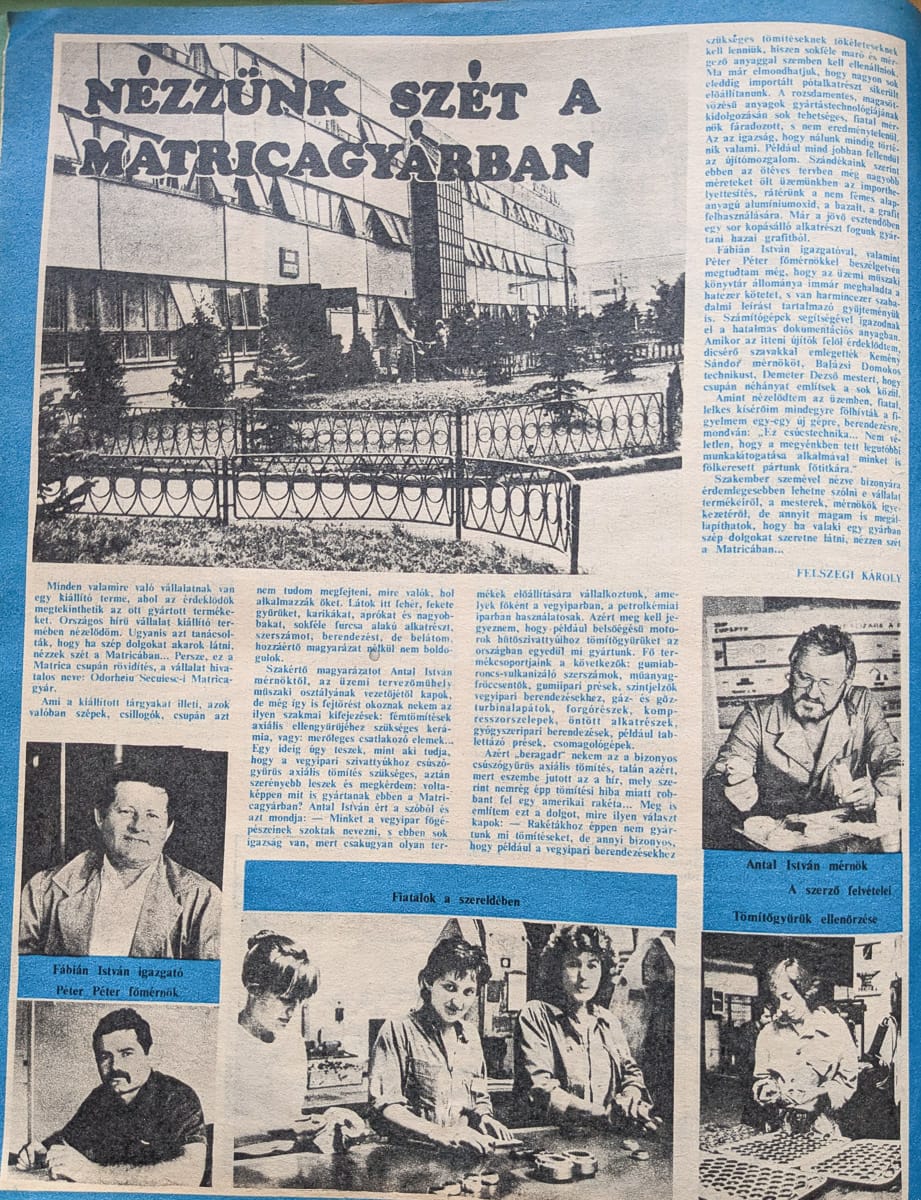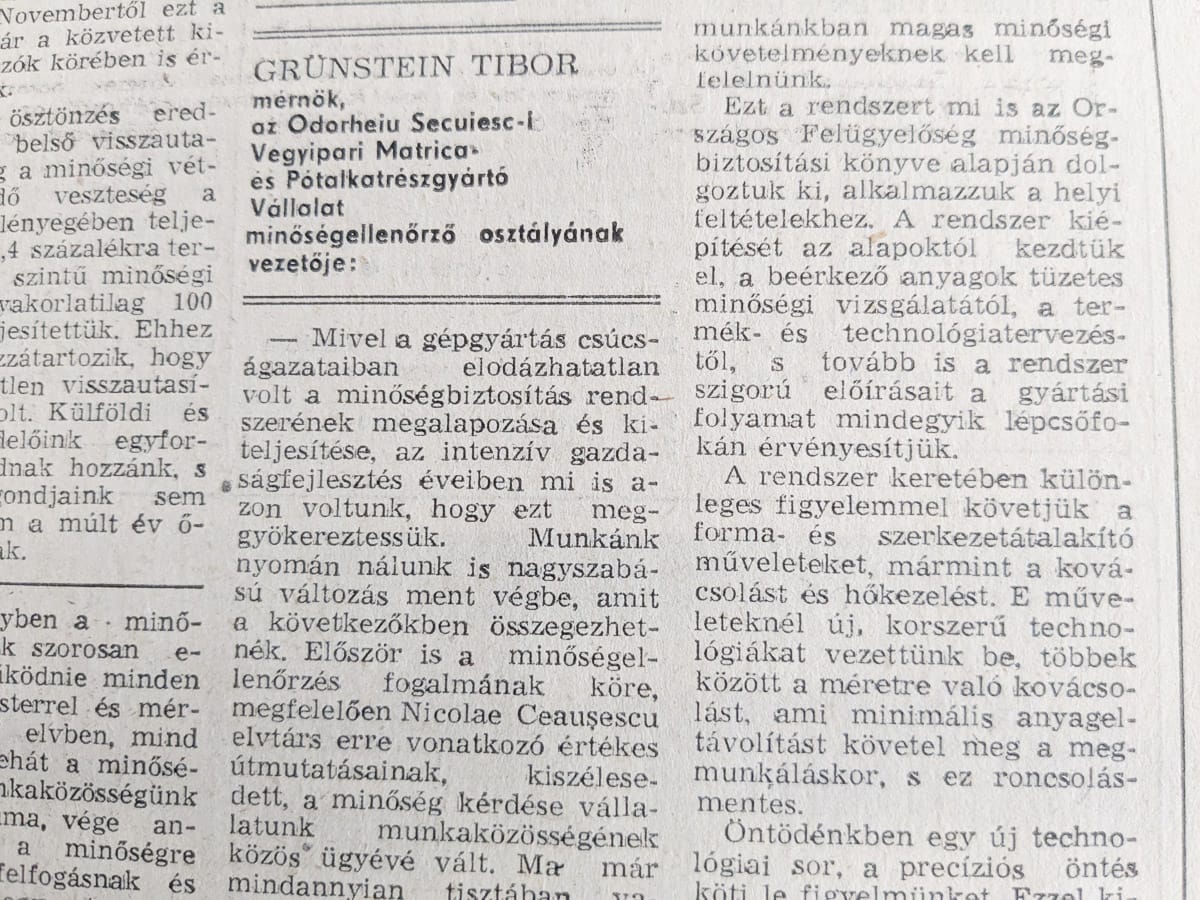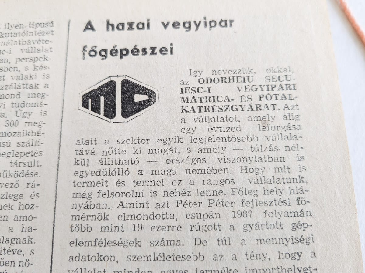 Az Odorheiu Secuiesc-i Vegyipari Matrica- és Pótalkatrészgyár a legfontosabb Odorhei-i újságtéma volt, több magasztaló cikket is találtam róla: