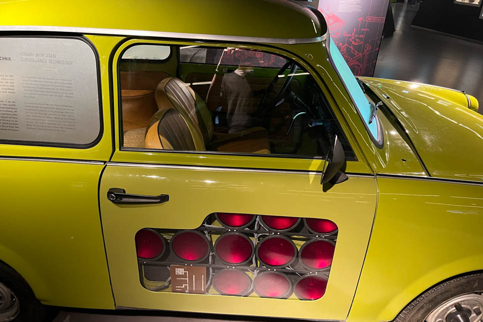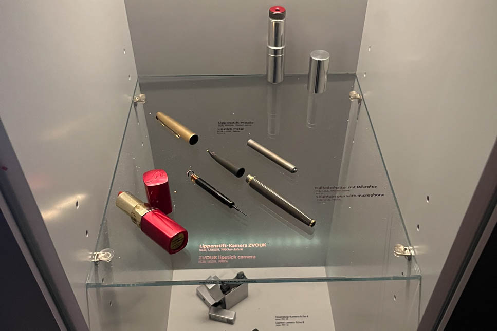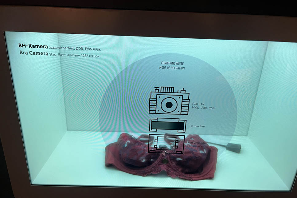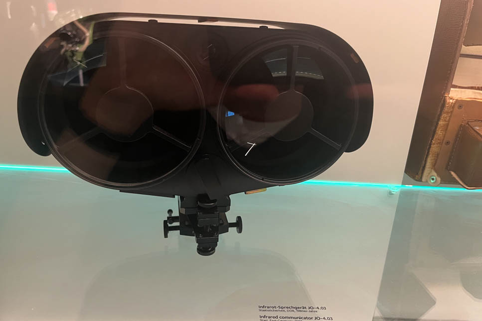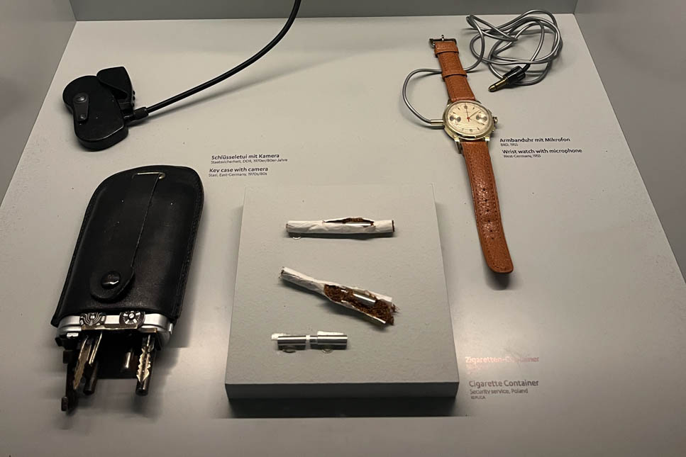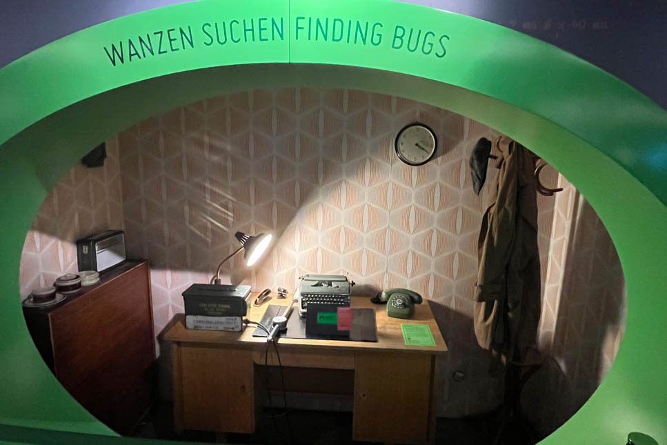 A háború végével a fejlett világ nagyobb részében névileg béke honolt, de világ két részre szakadt. A berlinieknek ez a szakadás sokkal húsbavágóbb volt, mint sokaknak, a város keleti felét 1961-től egy fizikai fal vágta ketté – az addig egy teret képező Potsdamer Platz is hirtelen két külön világban találta magát, de még fontosabb, hogy szomszédok és rokonok évtizedekre szakadtak el úgy, hogy nem tudhatták, hogy valaha is vége lesz-e a rémálomnak. Ebben az időben Berlinben is mindenféle kém és kémfelszerelés jelent meg – a keleti részben a kormány elsőszámú ellensége maga a nép lett. A lehallgatás mindennapos tevékenységgé vált – az alábbi installáció aznap épp nem volt működőképes, de az ötlet kiváló – a lehallgató poloskákat kell megtalálni a szobában.