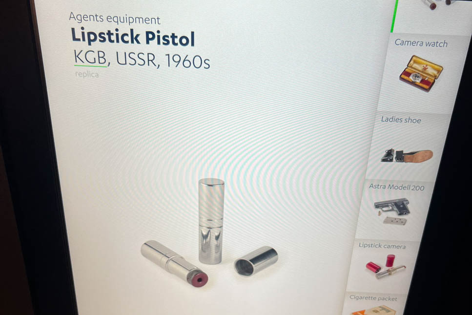 A nyolcszögű Leipziger tér így elég találó helyszín a Kémmúzeum számára. A múzeum, ellentétben a legtöbb múzeummal, egész este nyolcig nyitva van – ennek felettébb örültem, mivel hat körül értem csak oda. De hadd figyelmeztessem az olvasót, két óra nem ideális időtartam a bejárásra. Valószínűleg nem lehetetlen ugyan, de a részletes megfigyelőnek nem árt, ha még legalább egy fél óra rendelkezésére áll, hogy ne az izgalmasabb részeknél kelljen sietni.