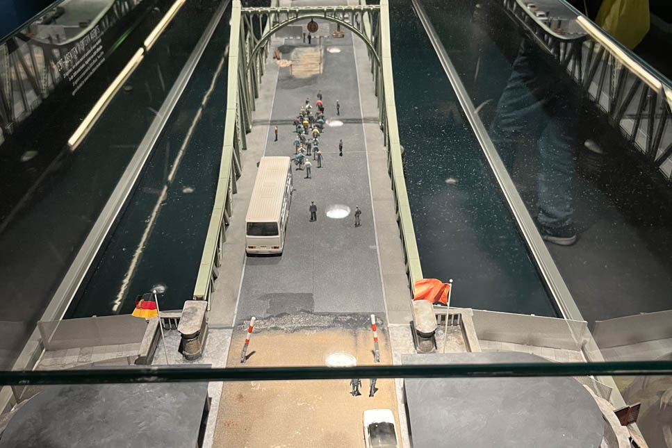Természetesen a kémek hídja, azaz a Glienicker-híd is szerepet kap a kiállításban, egy makett mutatja be a két fél közötti egyik kémcserét. A híd Nyugat-Berlin és Potsdam között húzódik, a hidegháborúban lezárták, hiszen a határ rajta futott át, és félreeső helyszíne miatt itt több kémcsere is zajlott.