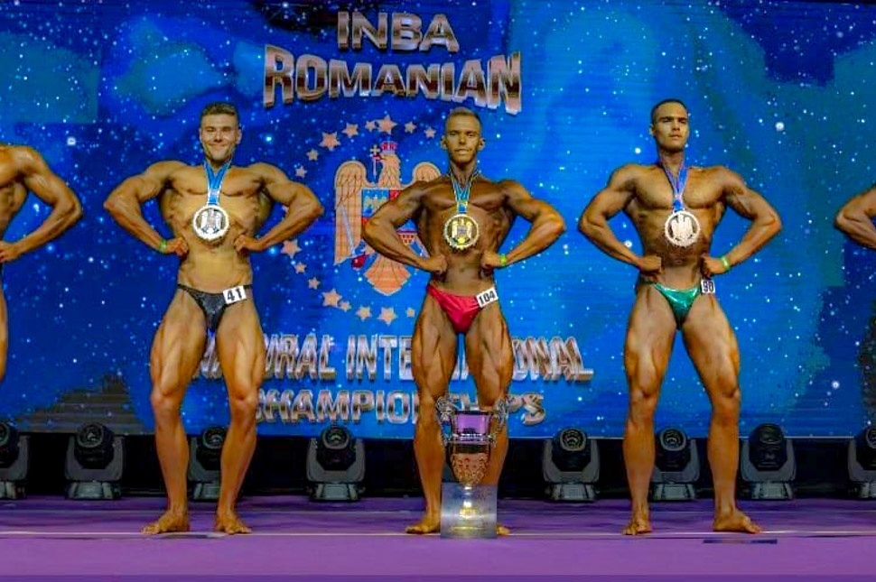 Naturál testépítő versenyen, Zalán középen, fotó: személyes archívuma