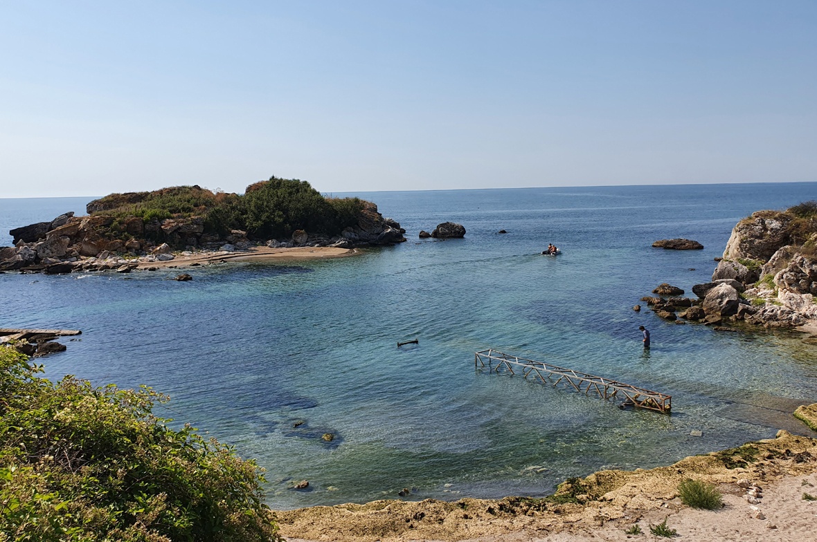 Stratégiai főhadiszállásunkat a törökellenes csatájáról híres Várna városában, egy Booking-on talált kis szállodában vertük le, ahonnan nagyjából félúton voltunk a román-bolgár határ és Nessebar között, a legdélibb célpontunktól, alig száz kilométerre mindkét irányba. A felfedezés azonban már jóval azelőtt elkezdődött, hogy becsekkoltunk volna a szálláson. Az egész éjszakán át tartó autózás után egyébre sem vágytunk jobban, mint gyorsan partra vetődni az első arra alkalmas helyen. Mégsem volt olyan egyszerű a választás, mert nyomban három, a Maps-ről szépnek ígérkező sziklás part közül választhattunk, végül a legközelebbi mellett döntöttünk, a fáradtság és az egyre nagyobb meleg miatt is.