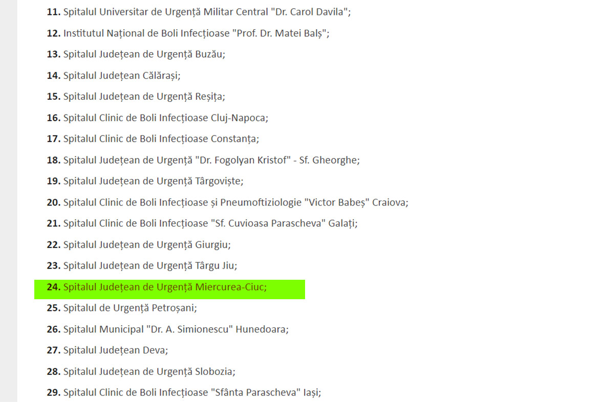 Az eddigi információink szerint a rendelet mellékletében (13-16. oldalon) szerepel azoknak a kórházaknak a listája, amelyeket „spital suport”, azaz ahogy a közegészségügyi igazgatóság vezetője fogalmazott, háttérkórházként neveznek meg.
