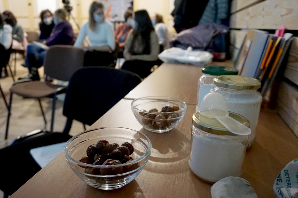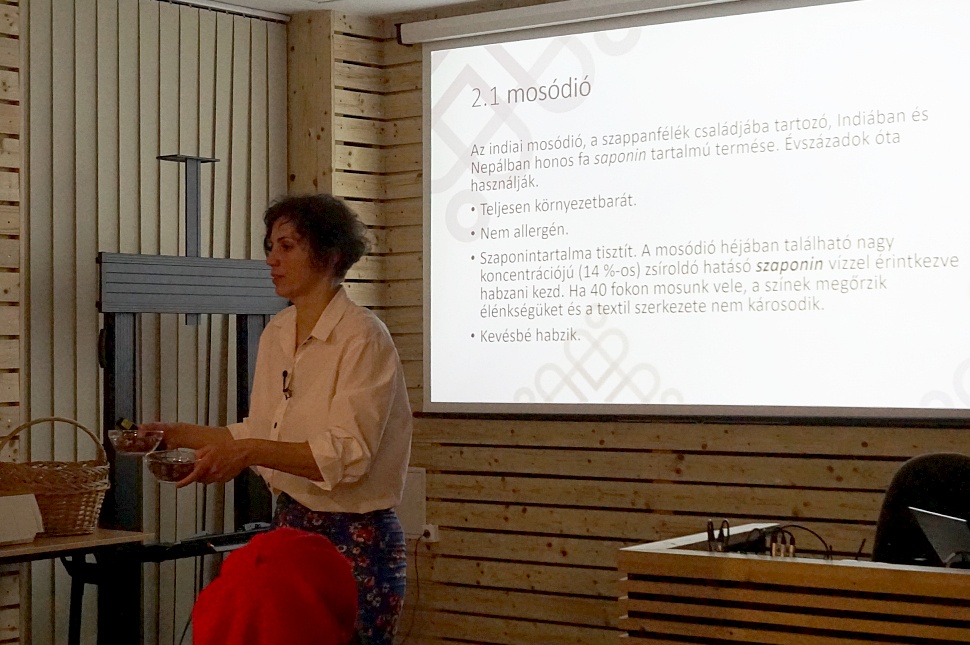 Az organikus alternatívák sorát a mosódióval kezdte az SZKA kuratóriumi elnöke. Megmutatta, hogyan néz ki használat előtt és után egy mosódió: nem könnyű eltéveszteni, míg a használt száraz, addig a másikon érezni a szaponin ragacsosságát. Ez teljesen környezetbarát, nem allergén és kevésbé habzik. Hátránya, hogy sárgulást okozhat, de csak akkor, ha önmagában használjuk.