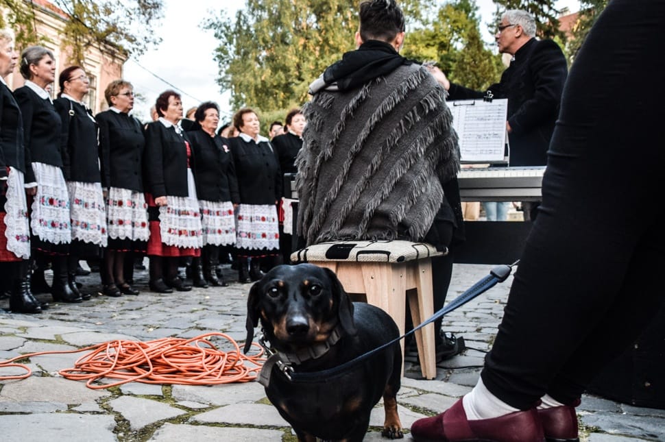 Tovább megyünk, Lahner György emlékére fuvolaelőadást hallgatunk Haáz Mártontól, ami nem véletlen: utolsó éjszakáján a vértanú maga is fuvolán játszott. A városháza előtti, nyolcadik megállónál Albert Orsolya olvassa fel a kortárs költő, Karácsonyi Zsolt Nem apokrif. Nem háború című versét Knezić Károly képe mellett, és ahogy az Üldözöttek és áldozatok emlékművéhez érünk, ahol Nagysándor József képe van, az Ave Maria csendül fel Faluvégi-Chripkó Krisztina előadásában.