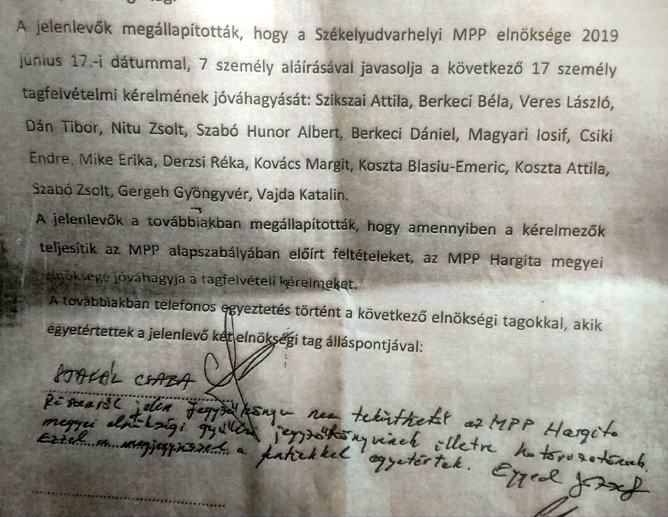 Márpedig a Megyei Szervezet Elnökségének (MSZE) szerdai közleményében az áll, hogy "feltételezhetően szabálytalanság történt" a július 15-ei közgyűlésen, mert olyan személyek is szavazhattak, akik még nem voltak a párt tagjai. A tagfelvételi kérelmek jóváhagyására csak július 18-án, három nappal később került sor.