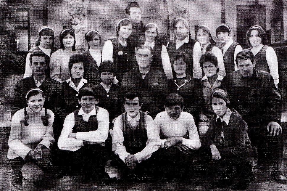 A parajdi iskola diákjai és tanárai 1972-ben. Forrás: Az Áprily Lajos Általános Iskola emlékkönyve, 2009.